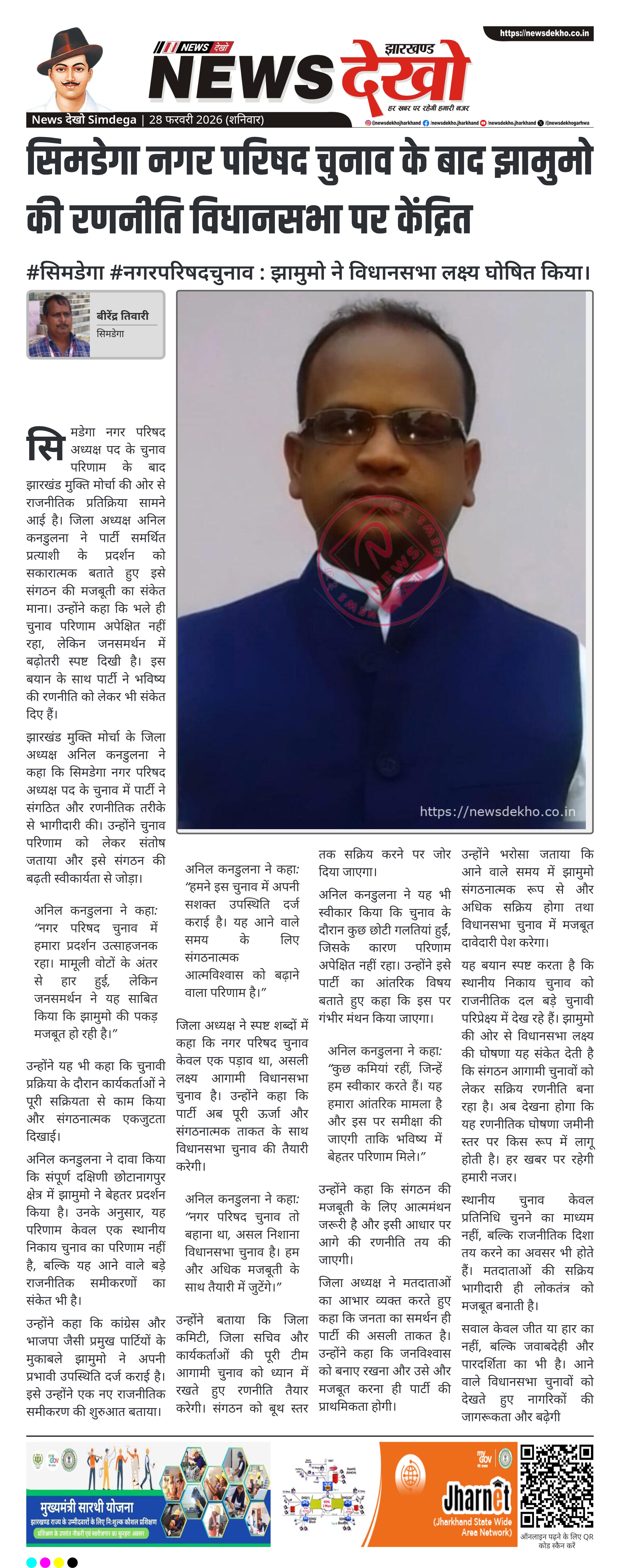 अनिल कनडुलना ने कहा: “नगर परिषद चुनाव में हमारा प्रदर्शन उत्साहजनक रहा। मामूली वोटों के अंतर से हार हुई, लेकिन जनसमर्थन ने यह साबित किया कि झामुमो की पकड़ मजबूत हो रही है।”