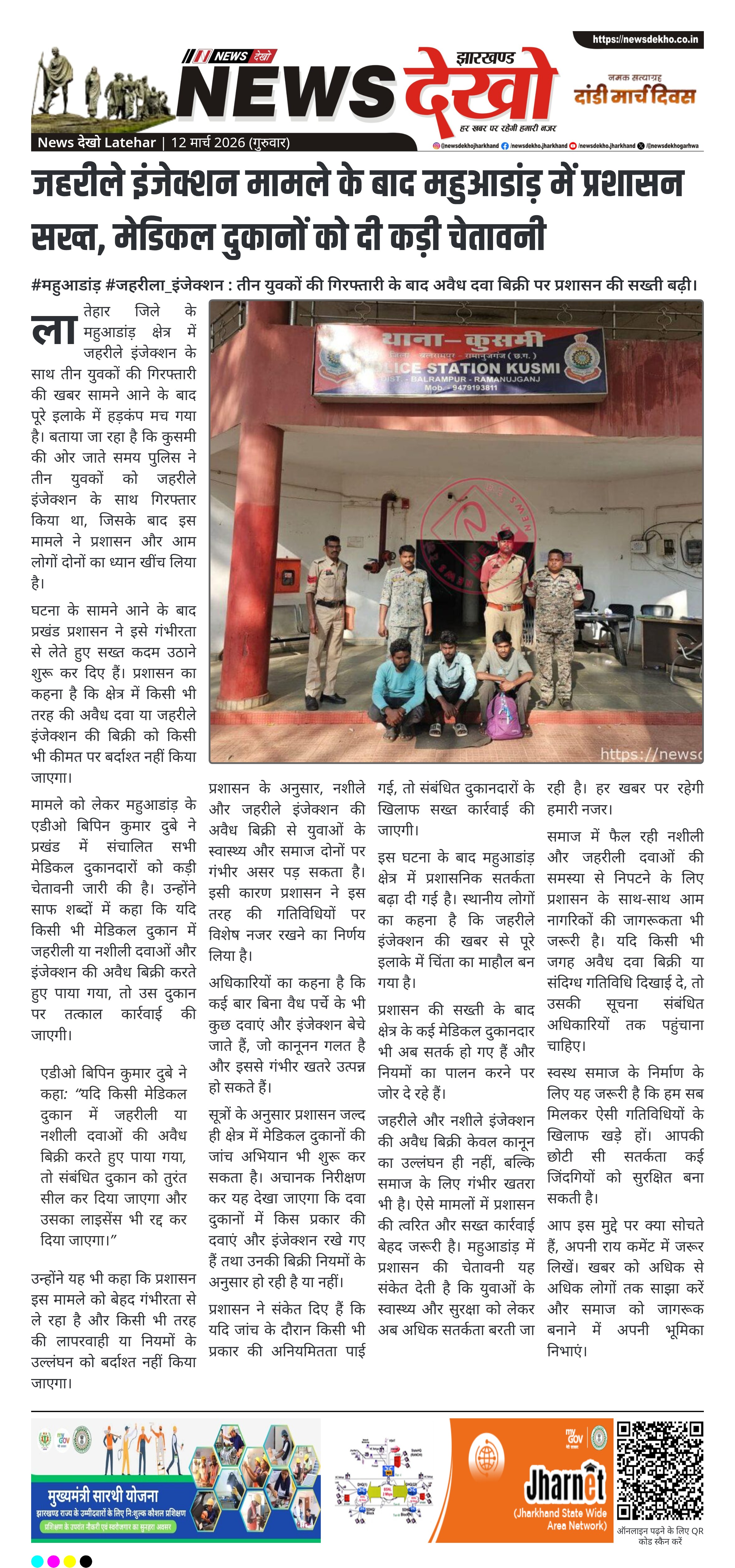 #महुआडांड़ #जहरीला_इंजेक्शन : तीन युवकों की गिरफ्तारी के बाद अवैध दवा बिक्री पर प्रशासन की सख्ती बढ़ी।