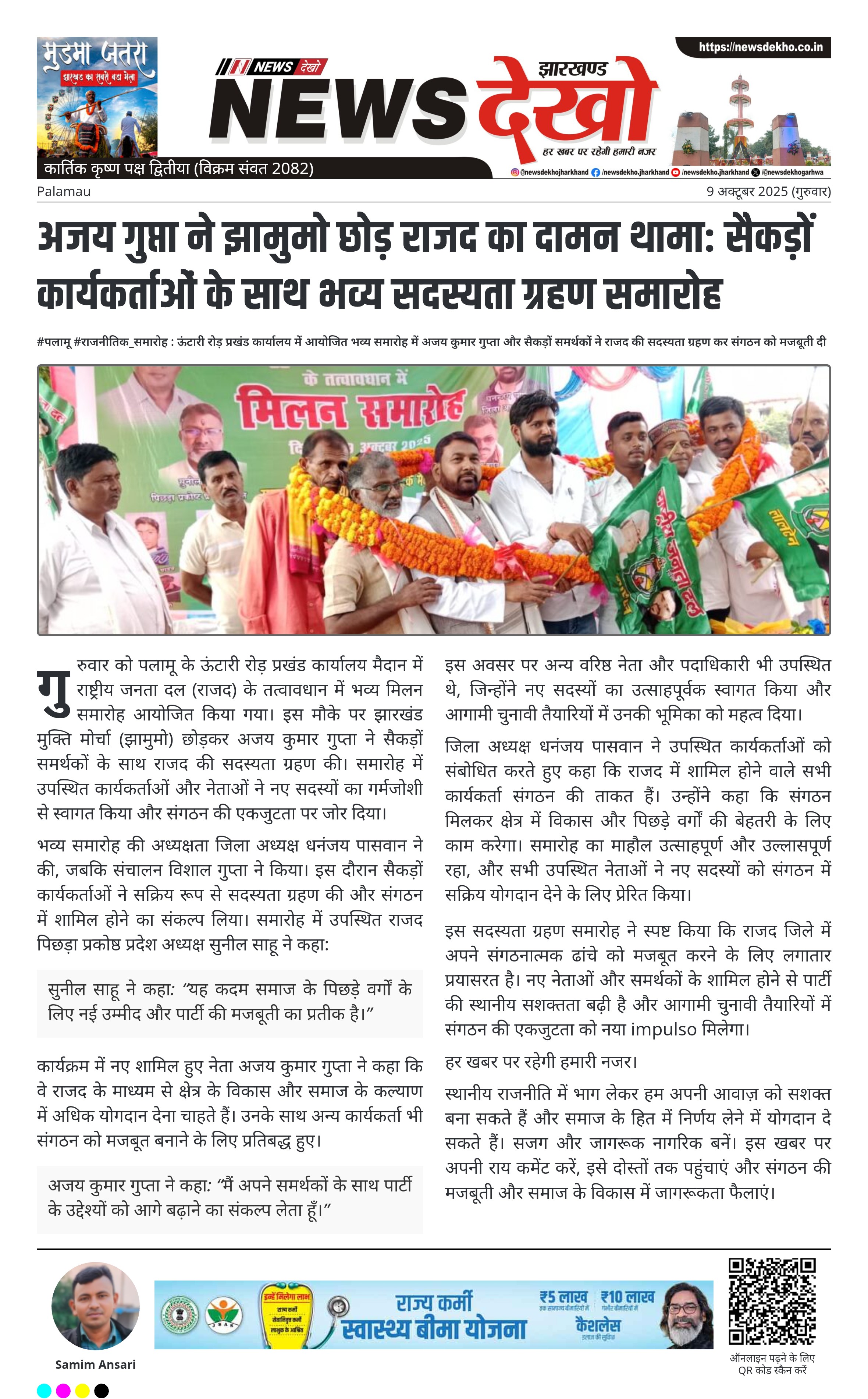 - अजय कुमार गुप्ता झामुमो छोड़कर राजद में शामिल।