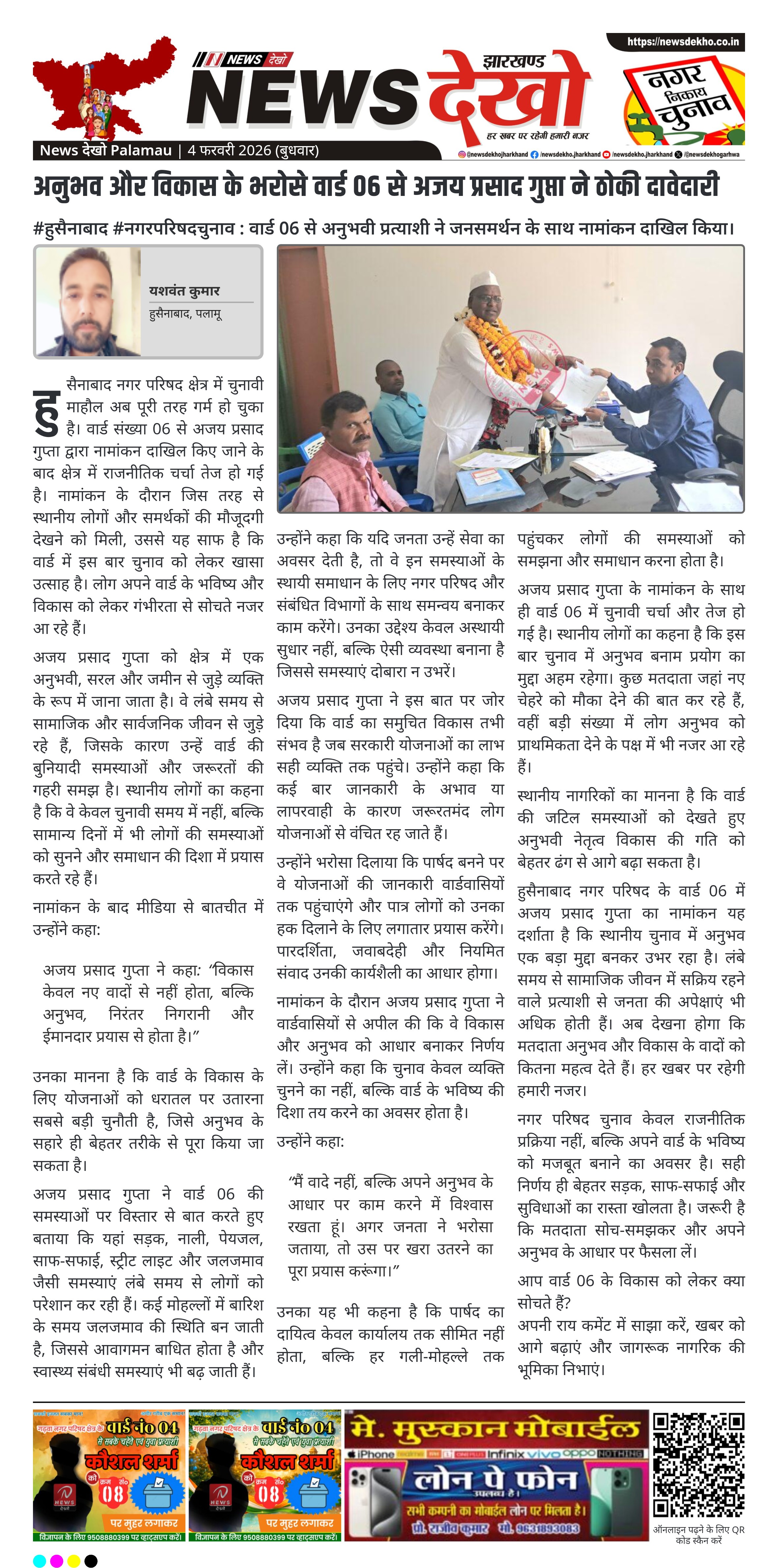 - अजय प्रसाद गुप्ता ने वार्ड संख्या 06 से पार्षद पद के लिए नामांकन किया।