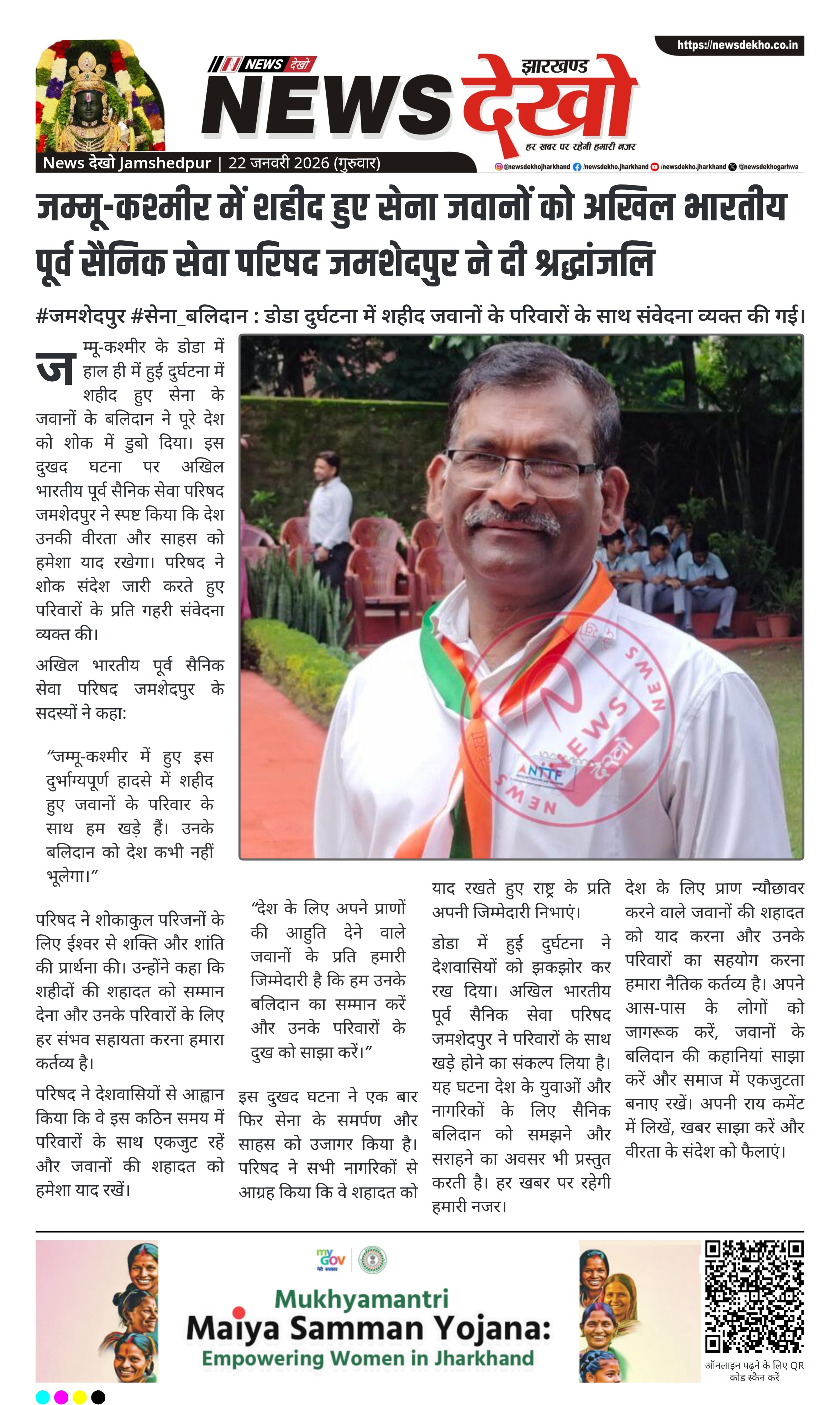 • अखिल भारतीय पूर्व सैनिक सेवा परिषद जमशेदपुर ने संवेदना व्यक्त की।
