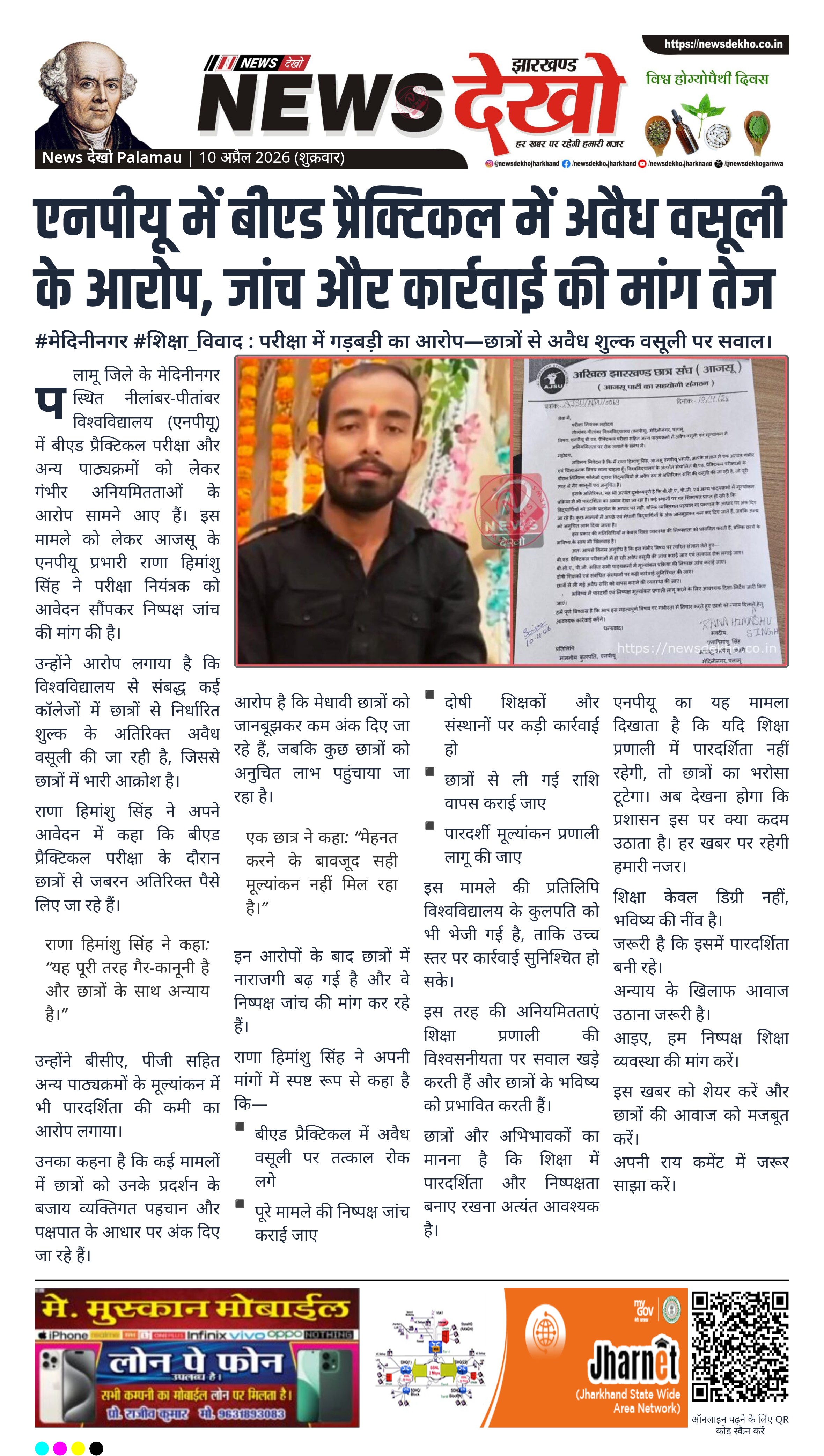 - बीएड प्रैक्टिकल में अवैध वसूली का आरोप।