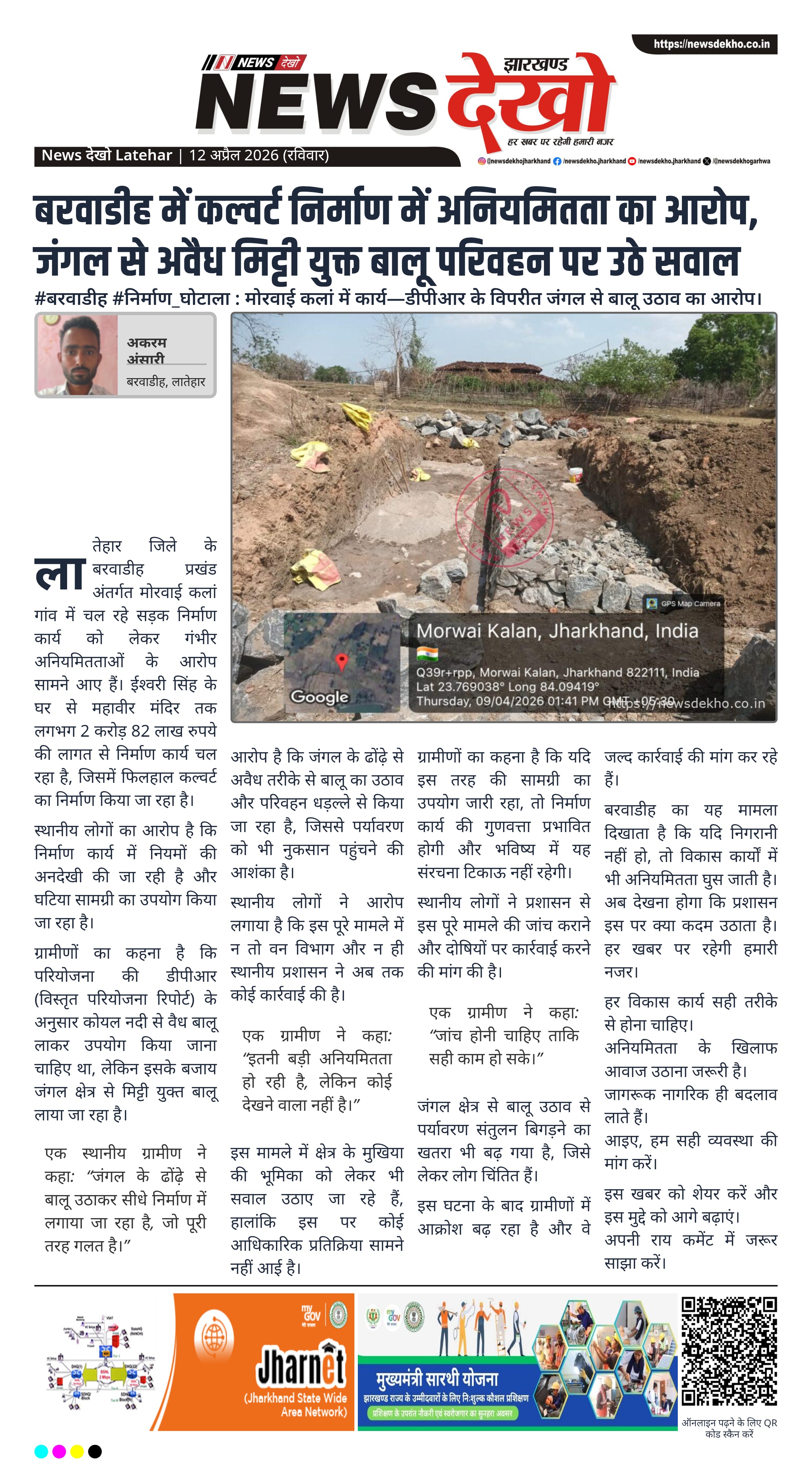 - कल्वर्ट निर्माण में अवैध बालू उपयोग का आरोप।