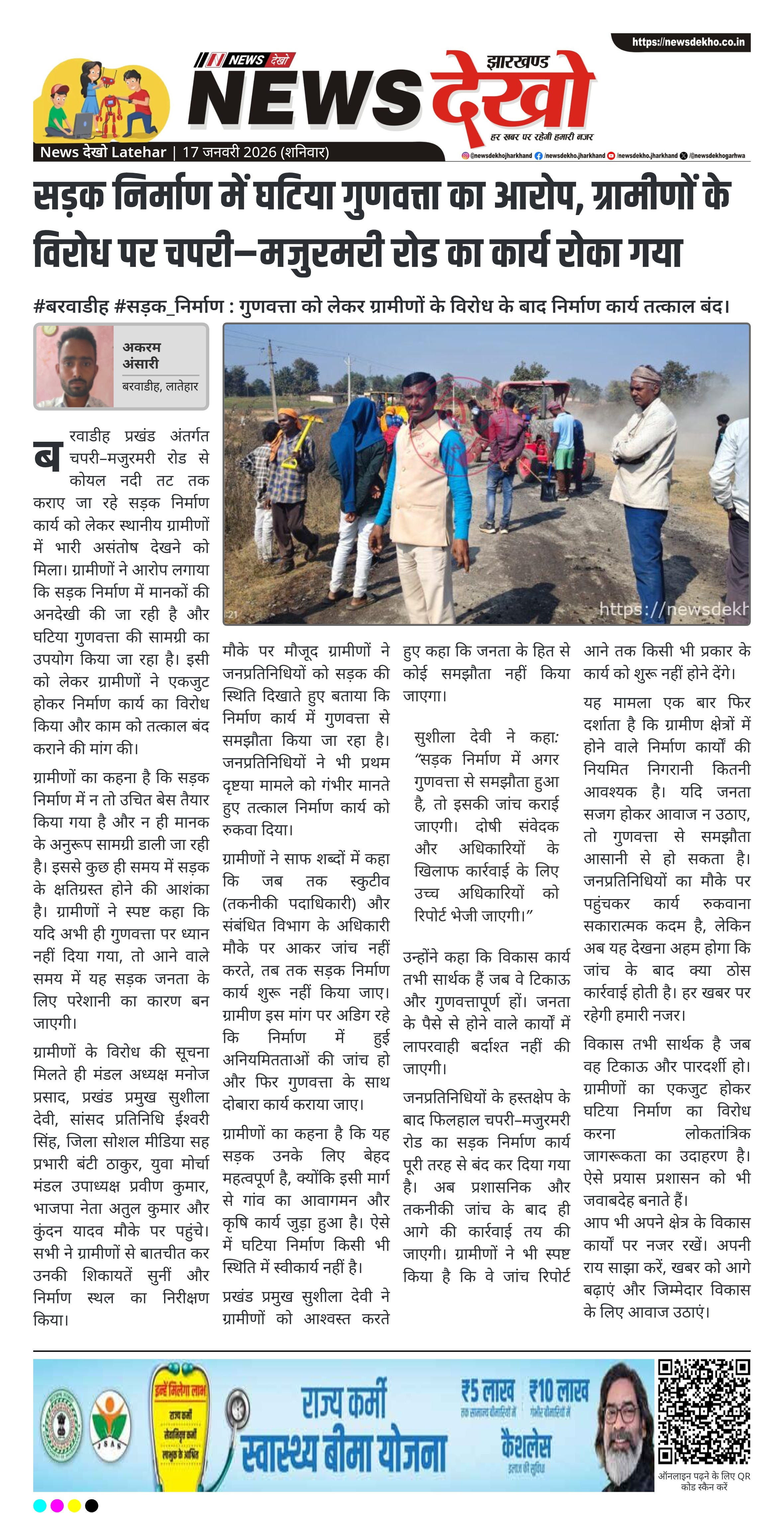 - घटिया गुणवत्ता के आरोप में निर्माण कार्य रोका गया।