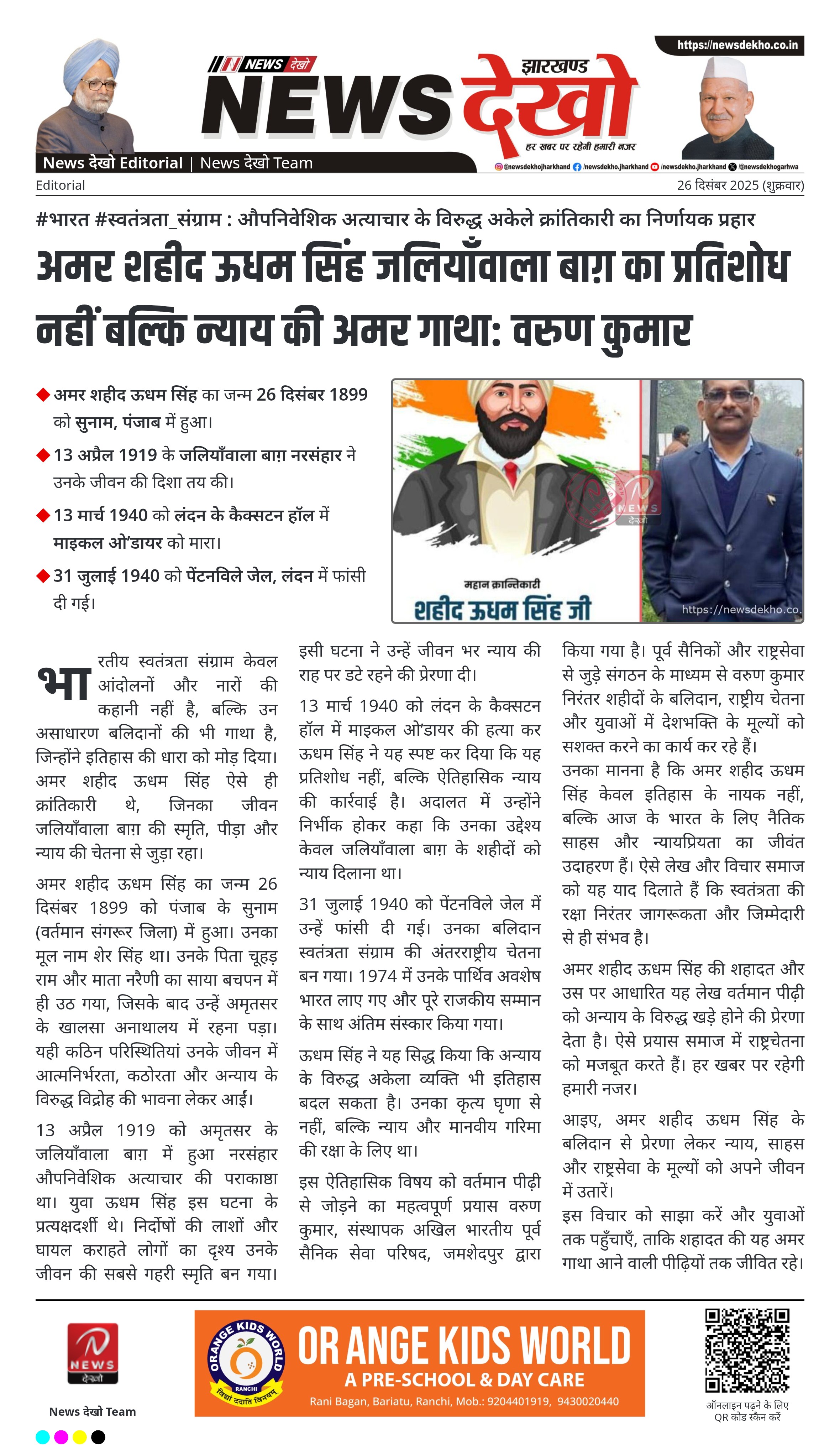उनका मानना है कि अमर शहीद ऊधम सिंह केवल इतिहास के नायक नहीं, बल्कि आज के भारत के लिए नैतिक साहस और न्यायप्रियता का जीवंत उदाहरण हैं। ऐसे लेख और विचार समाज को यह याद दिलाते हैं कि स्वतंत्रता की रक्षा निरंतर जागरूकता और जिम्मेदारी से ही संभव है।