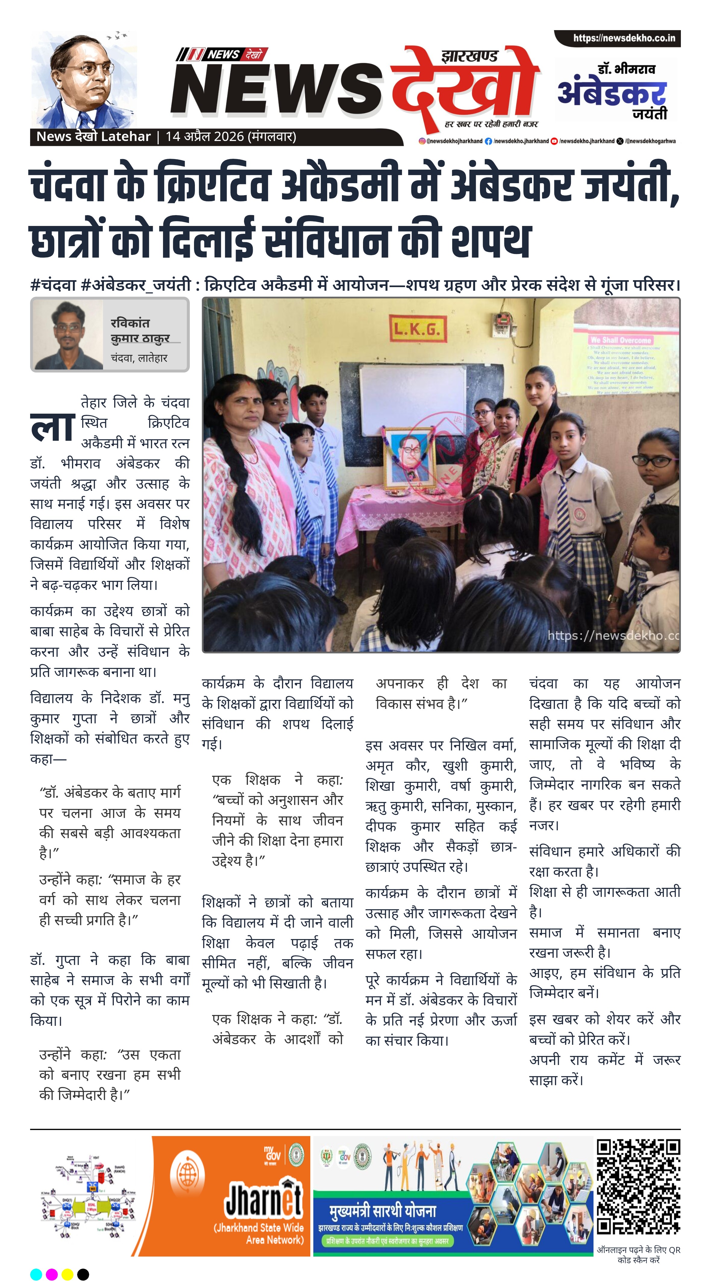 #चंदवा #अंबेडकर_जयंती : क्रिएटिव अकैडमी में आयोजन—शपथ ग्रहण और प्रेरक संदेश से गूंजा परिसर।
