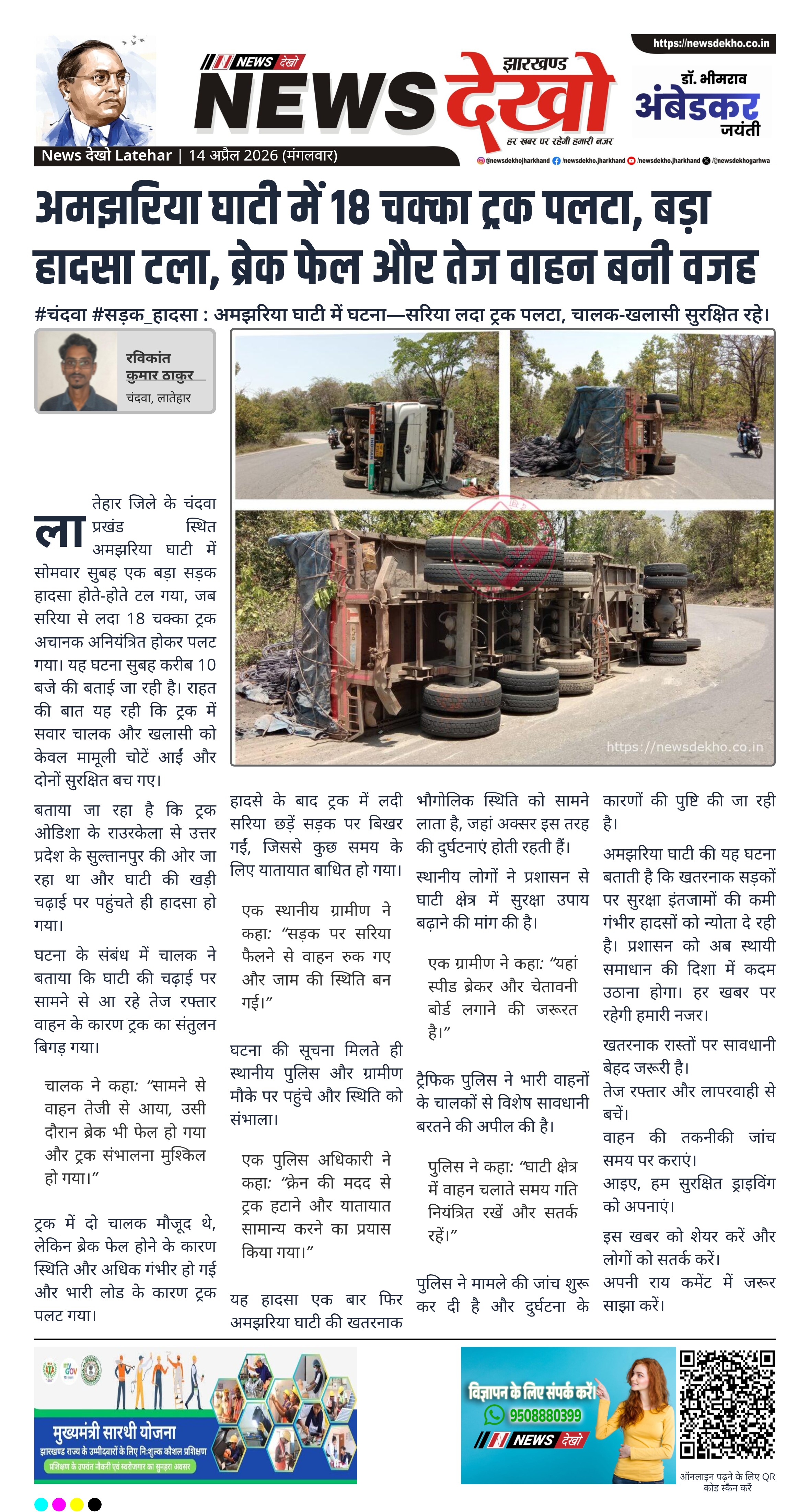 - चालक और खलासी मामूली चोट के साथ सुरक्षित।