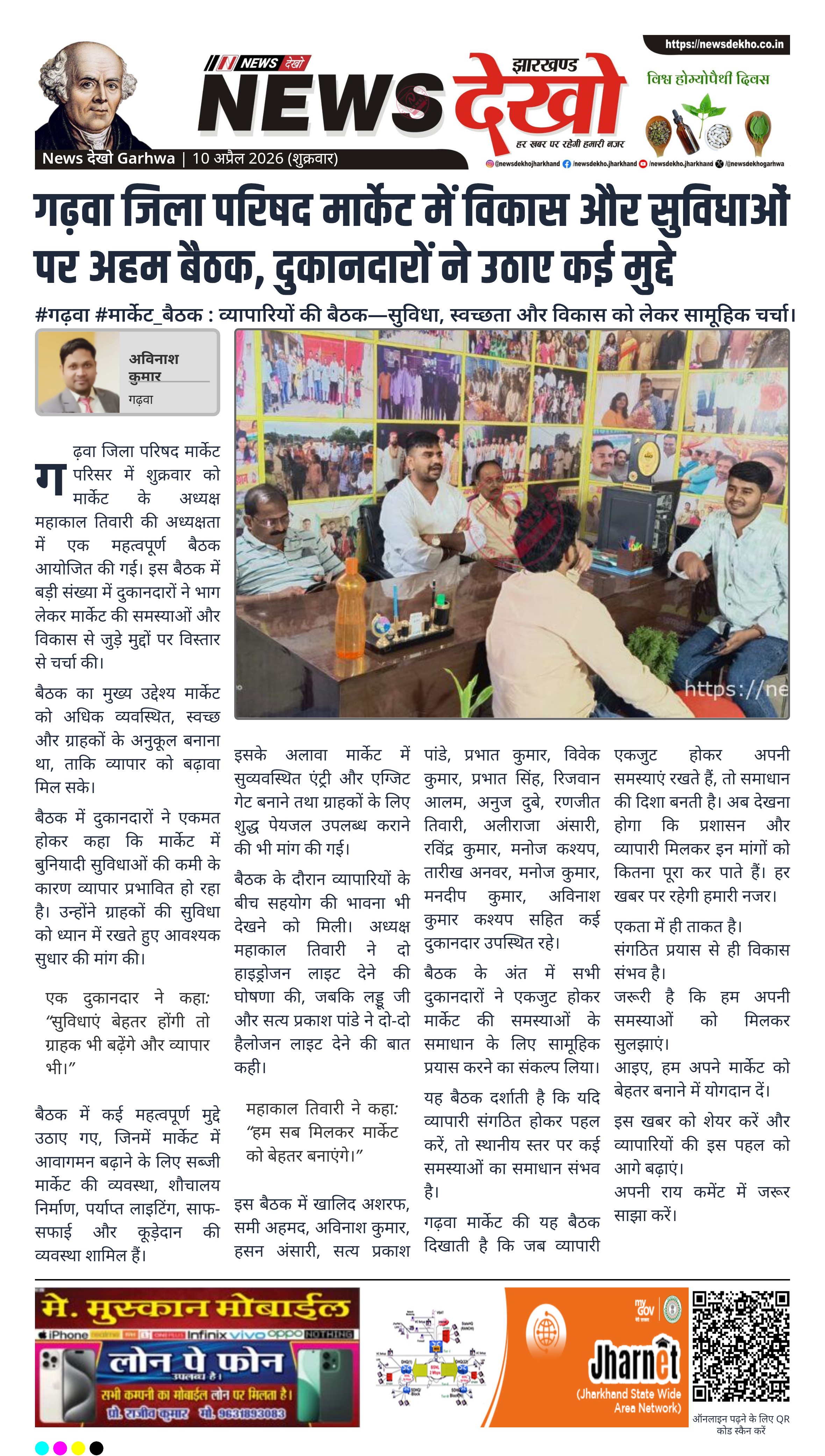 #गढ़वा #मार्केट_बैठक : व्यापारियों की बैठक—सुविधा, स्वच्छता और विकास को लेकर सामूहिक चर्चा।