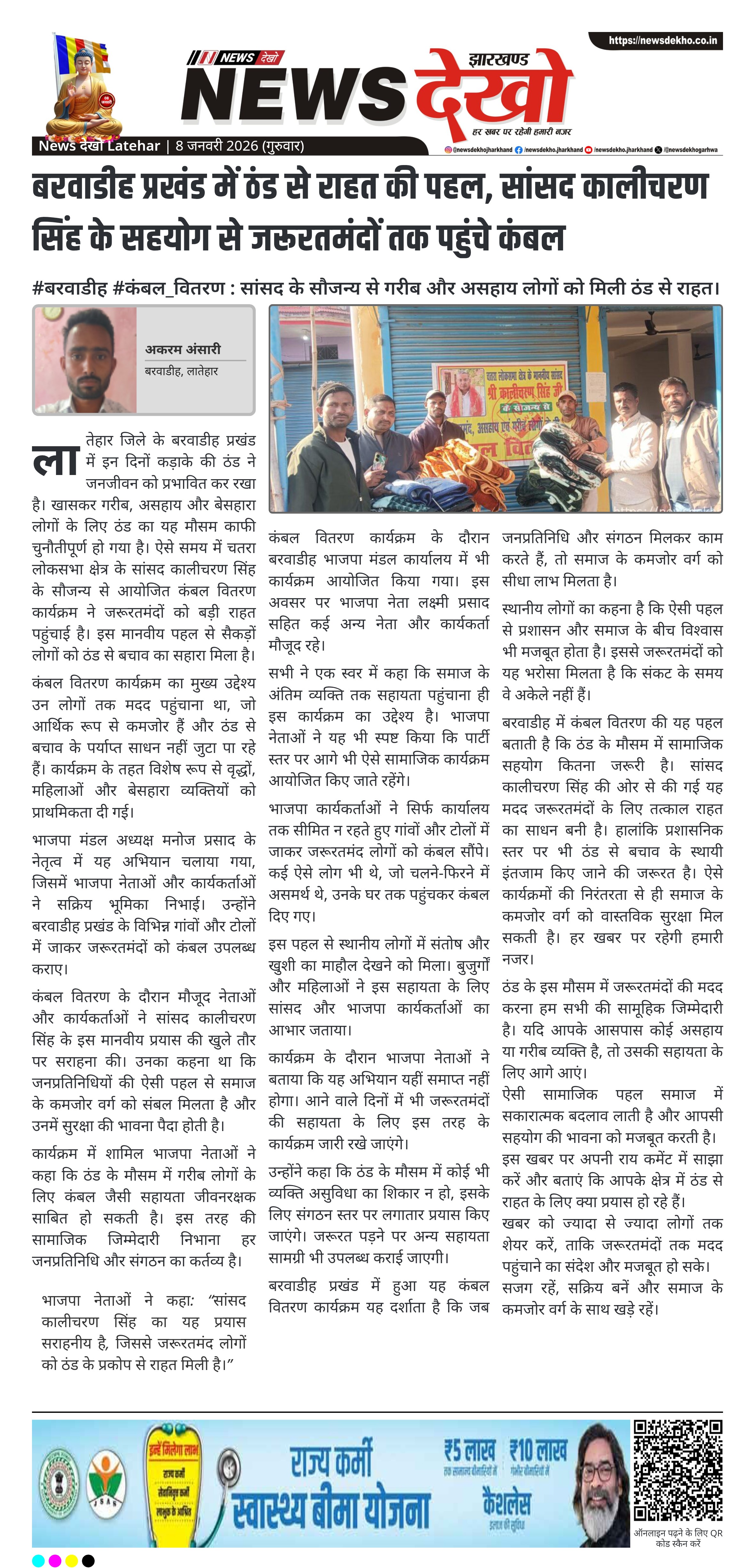भाजपा नेताओं ने कहा: “सांसद कालीचरण सिंह का यह प्रयास सराहनीय है, जिससे जरूरतमंद लोगों को ठंड के प्रकोप से राहत मिली है।”