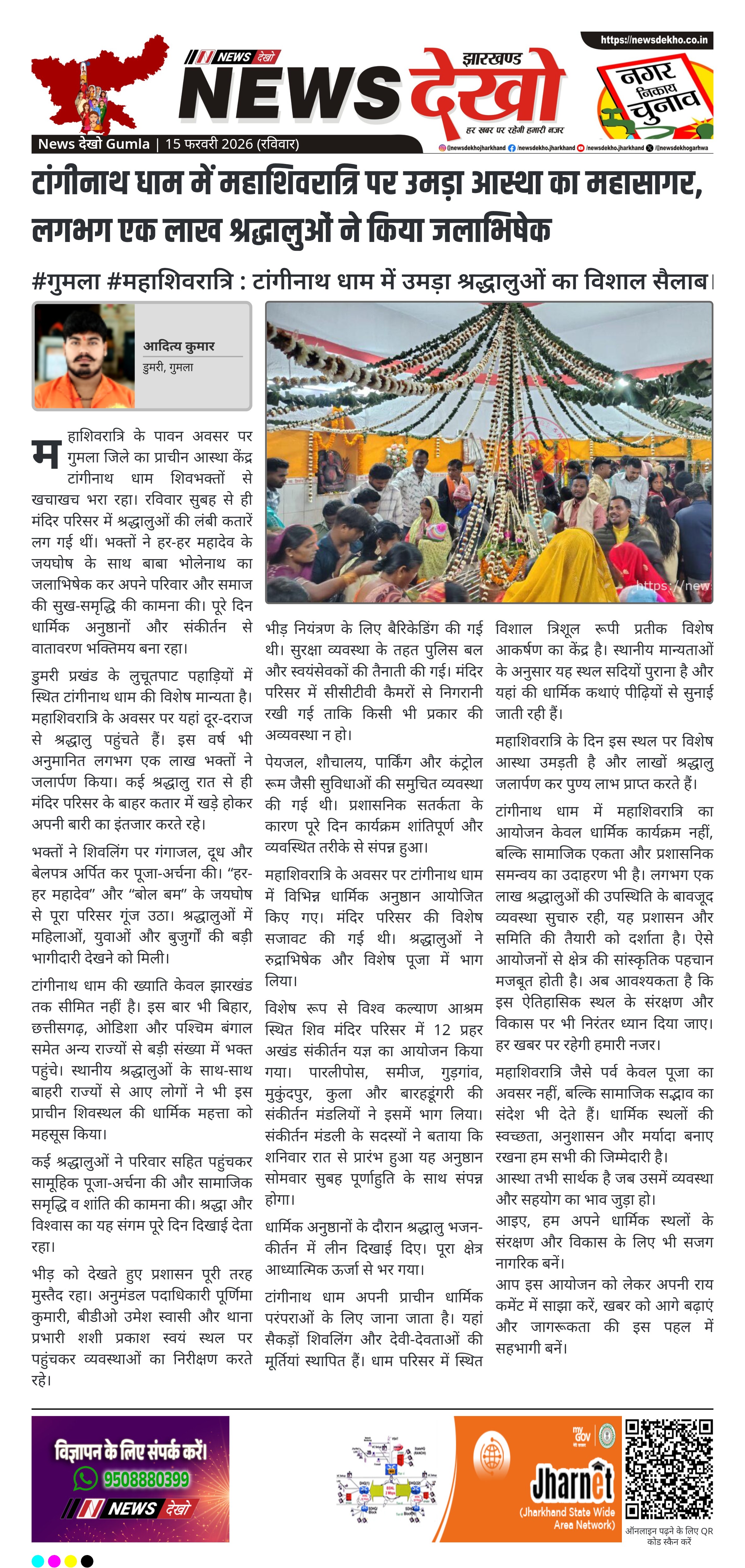 • टांगीनाथ धाम, डुमरी प्रखंड में महाशिवरात्रि पर लगभग एक लाख श्रद्धालुओं ने जलार्पण किया।