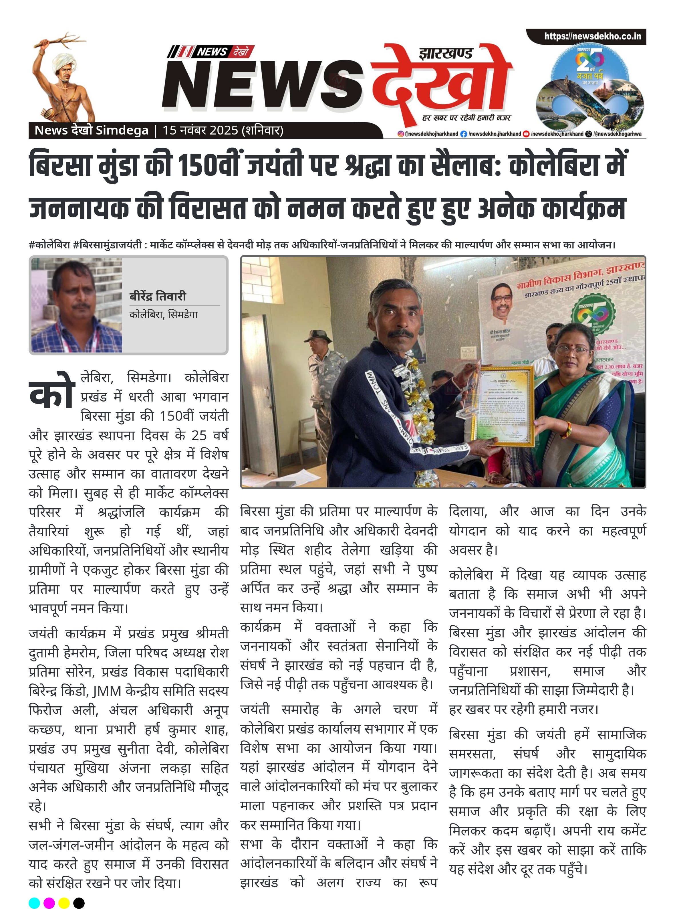 कोलेबिरा में दिखा यह व्यापक उत्साह बताता है कि समाज अभी भी अपने जननायकों के विचारों से प्रेरणा ले रहा है। बिरसा मुंडा और झारखंड आंदोलन की विरासत को संरक्षित कर नई पीढ़ी तक पहुँचाना प्रशासन, समाज और जनप्रतिनिधियों की साझा जिम्मेदारी है।