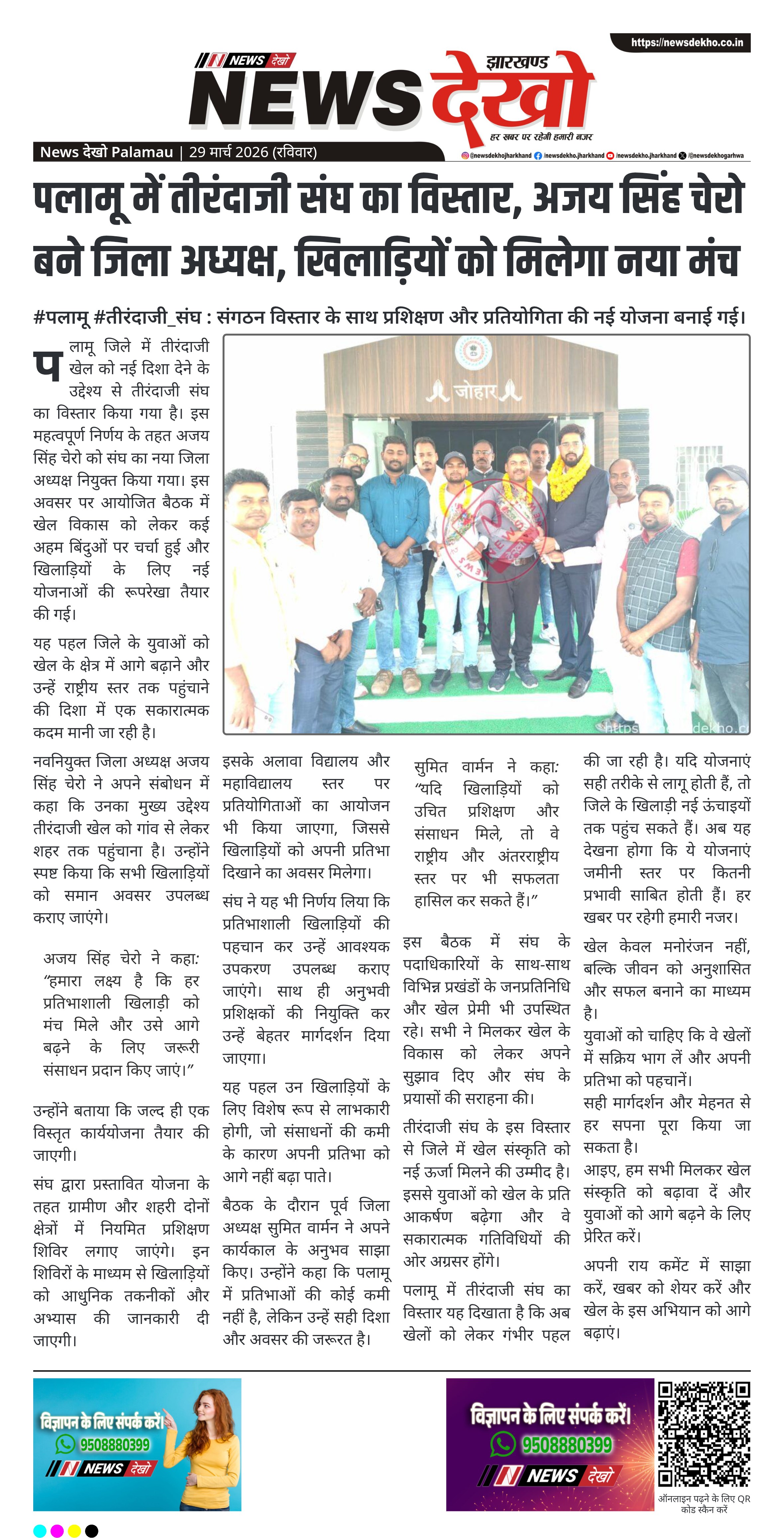 पलामू में तीरंदाजी संघ का विस्तार, अजय सिंह चेरो बने जिला अध्यक्ष, खिलाड़ियों को मिलेगा नया मंच