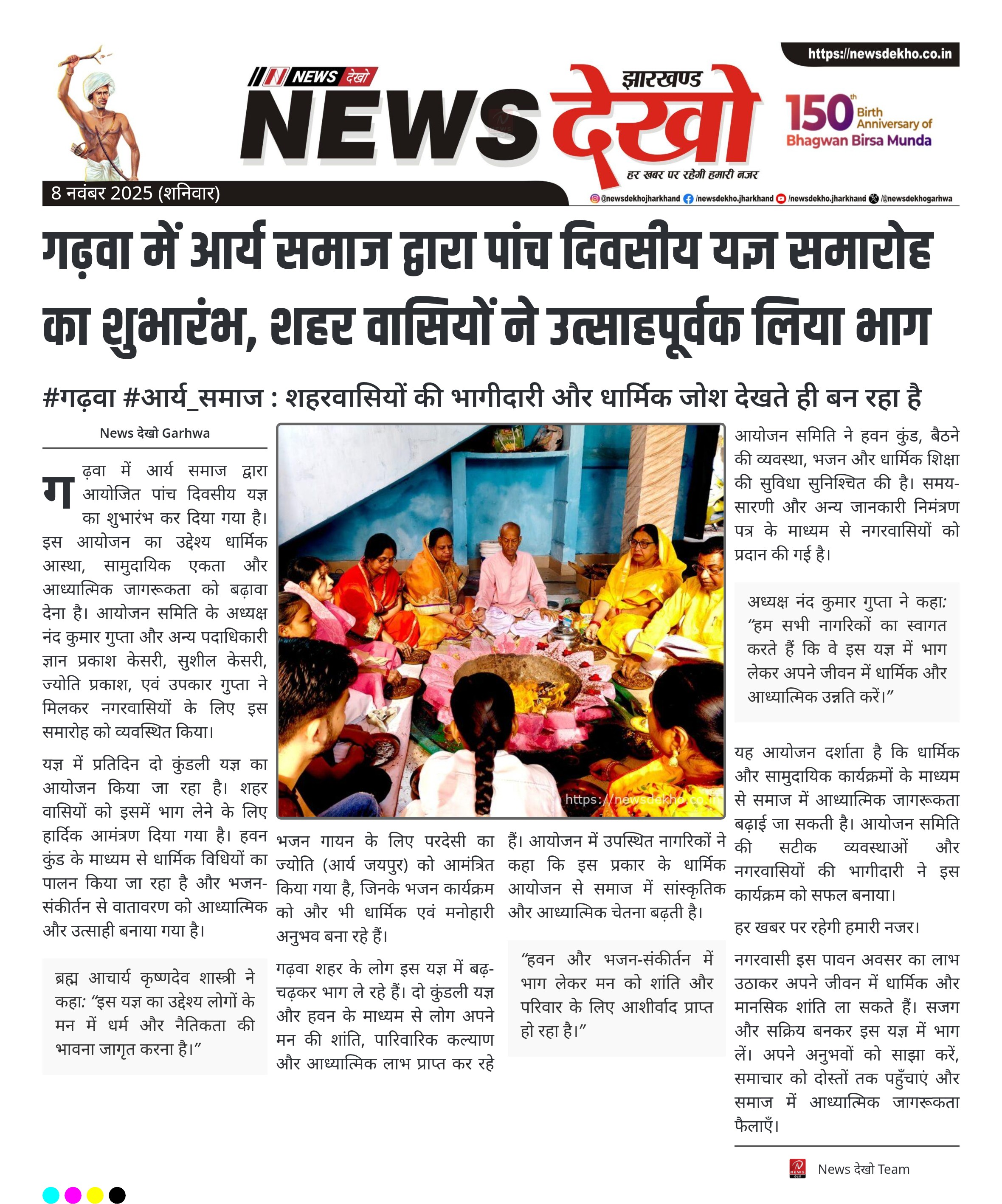 न्यूज़ देखो: गढ़वा में पांच दिवसीय आर्य समाज यज्ञ, नगरवासियों ने उत्साहपूर्वक लिया भाग