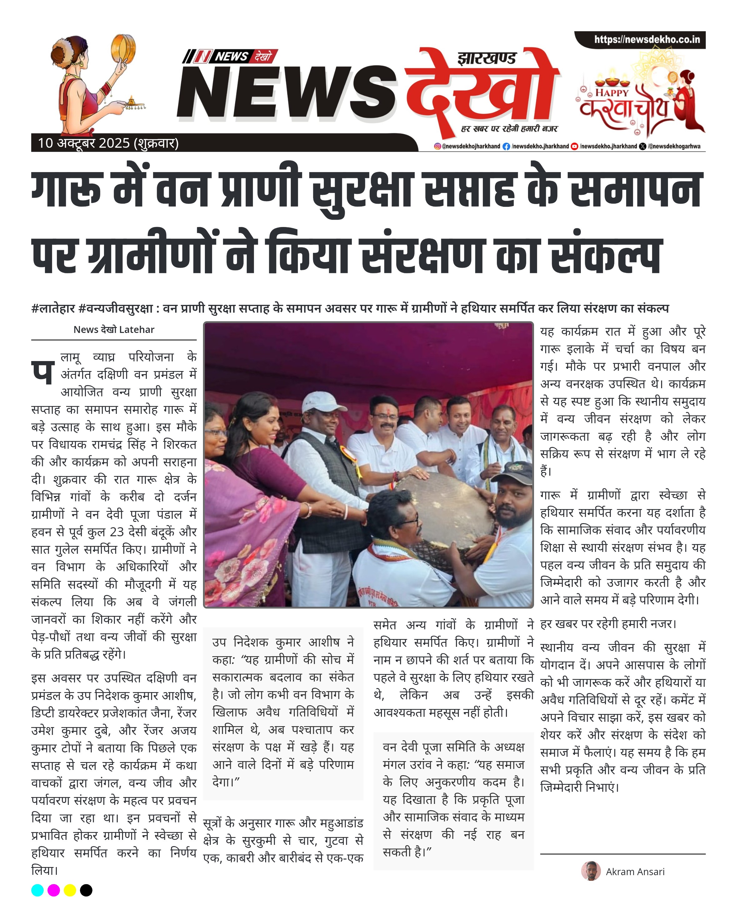 #लातेहार #वन्यजीवसुरक्षा : वन प्राणी सुरक्षा सप्ताह के समापन अवसर पर गारू में ग्रामीणों ने हथियार समर्पित कर लिया संरक्षण का संकल्प