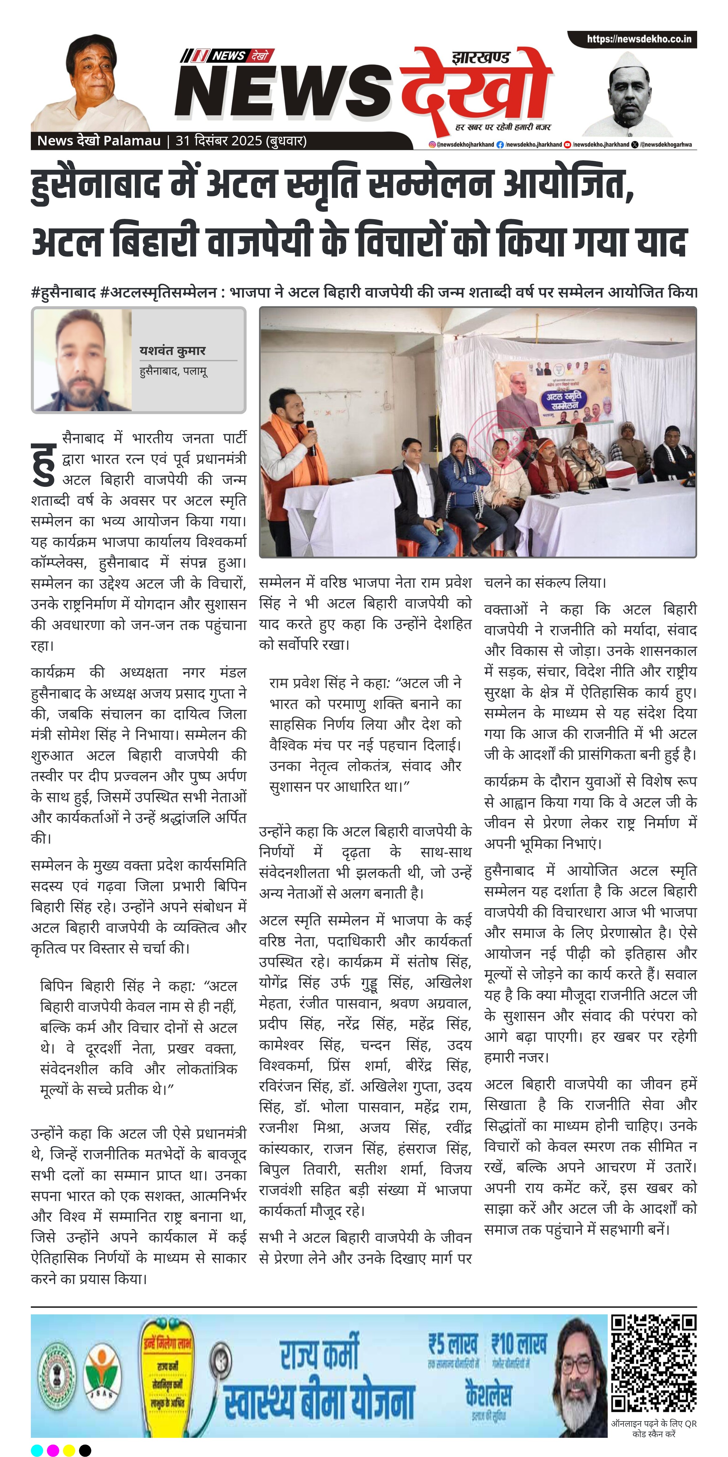 राम प्रवेश सिंह ने कहा: “अटल जी ने भारत को परमाणु शक्ति बनाने का साहसिक निर्णय लिया और देश को वैश्विक मंच पर नई पहचान दिलाई। उनका नेतृत्व लोकतंत्र, संवाद और सुशासन पर आधारित था।”