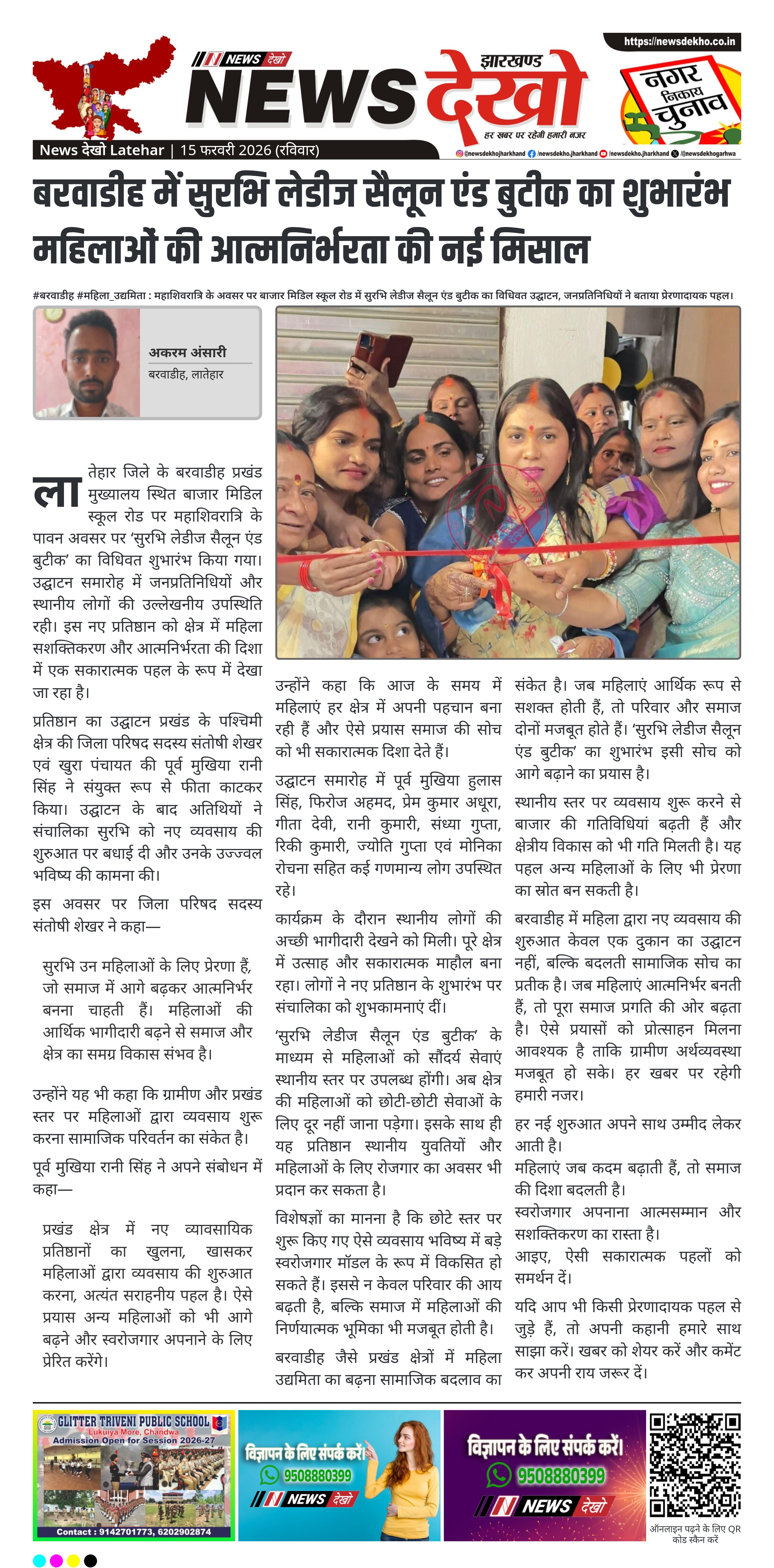 #गारू #महिला_स्वरोजगार : पलामू टाइगर रिजर्व परिसर में कौशल प्रशिक्षण समापन पर महिलाओं और युवतियों को उपकरण वितरण। रामचंद्र सिंह ने दीप प्रज्वलित कर कार्यक्रम का किया उद्घाटन। 60 प्रशिक्षित महिलाओं को वितरित की गई सिलाई मशीन। 40 युवतियों को प्रदान किया गया ब्यूटीशियन किट। आयोजन स्थल – पलामू टाइगर रिजर्व, गारू पूर्वी वन क्षेत्र परिसर। वन विभाग की पहल – महिलाओं को स्वरोजगार से जोड़ने का प्रयास। लातेहार। गारू प्रखंड स्थित पलामू टाइगर रिजर्व के गारू पूर्वी वन क्षेत्र…