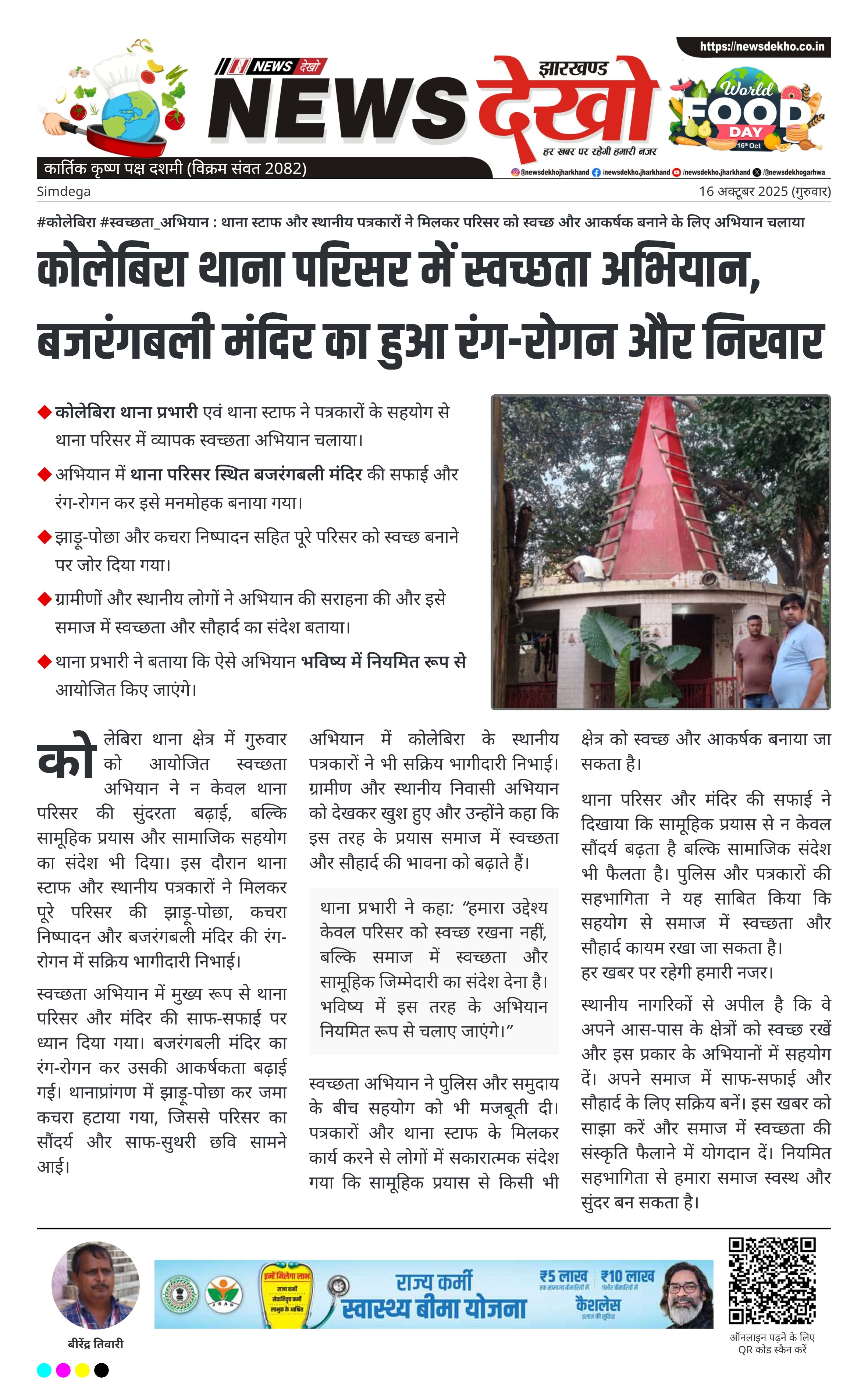 कोलेबिरा थाना परिसर में स्वच्छता अभियान, बजरंगबली मंदिर का हुआ रंग-रोगन और निखार