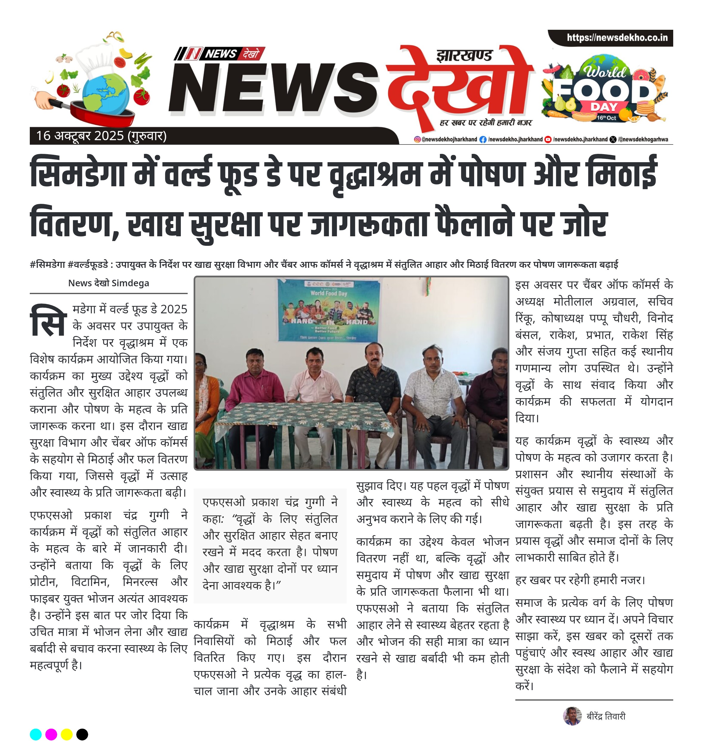 सिमडेगा में वर्ल्ड फूड डे पर वृद्धाश्रम में पोषण और मिठाई वितरण, खाद्य सुरक्षा पर जागरूकता फैलाने पर जोर