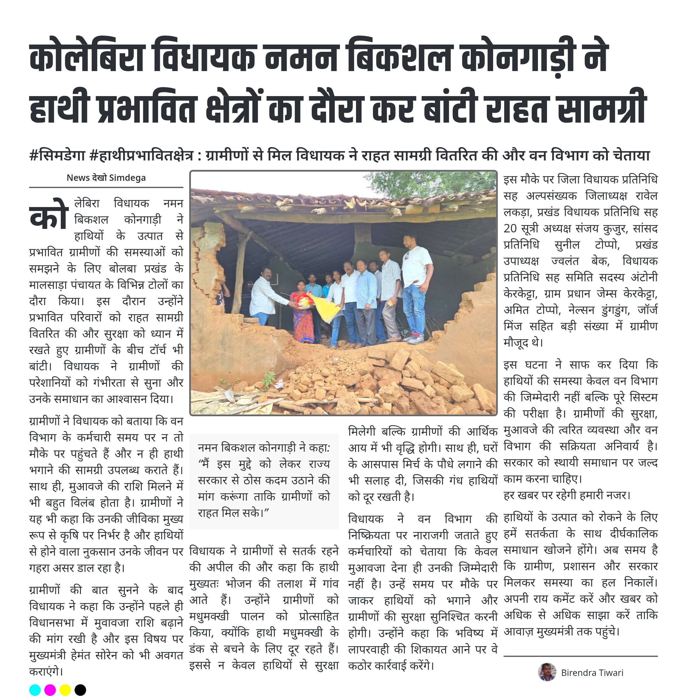कोलेबिरा विधायक नमन बिकशल कोनगाड़ी ने हाथी प्रभावित क्षेत्रों का दौरा कर बांटी राहत सामग्री