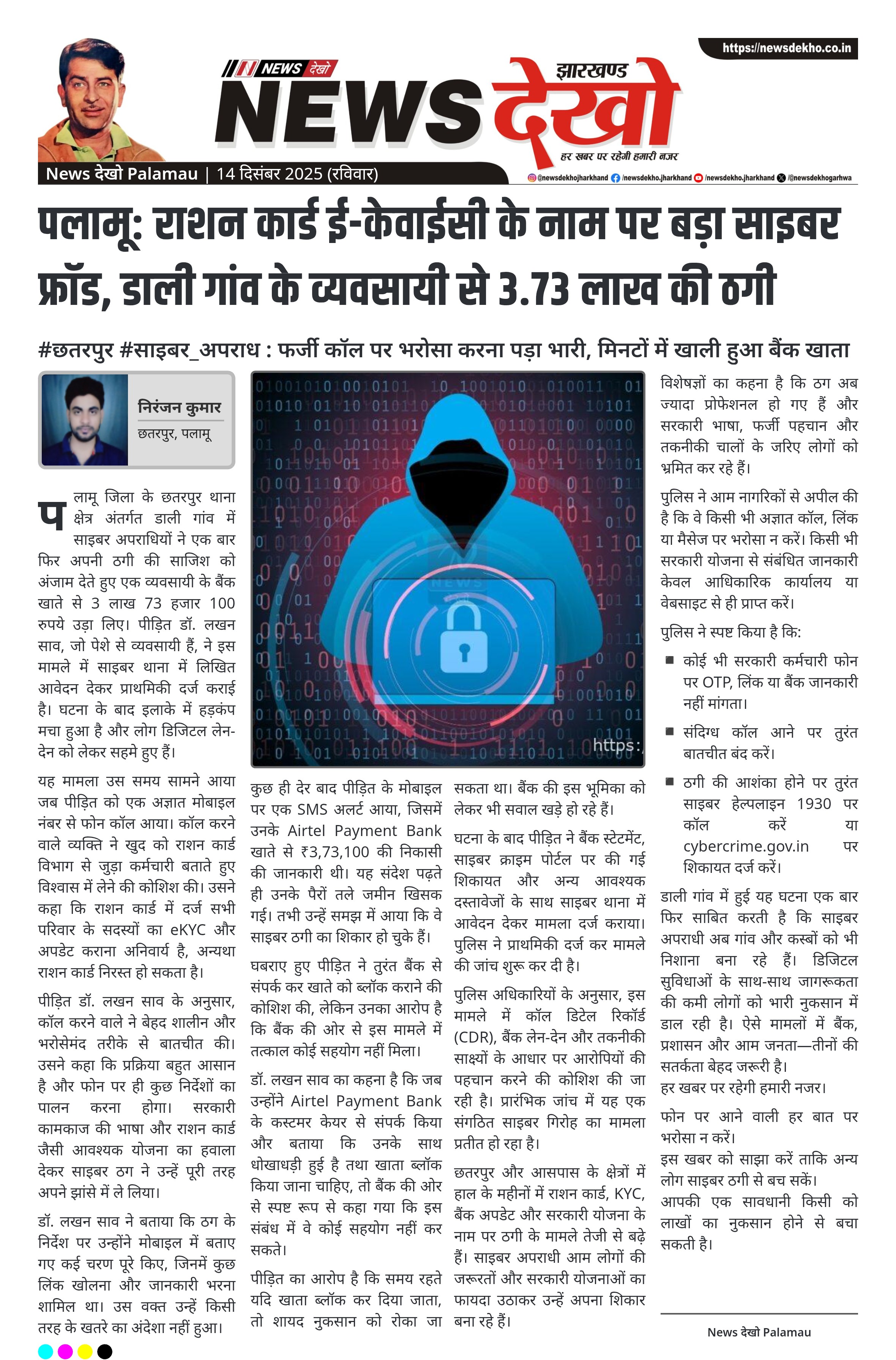 पलामू: राशन कार्ड ई-केवाईसी के नाम पर बड़ा साइबर फ्रॉड, डाली गांव के व्यवसायी से 3.73 लाख की ठगी