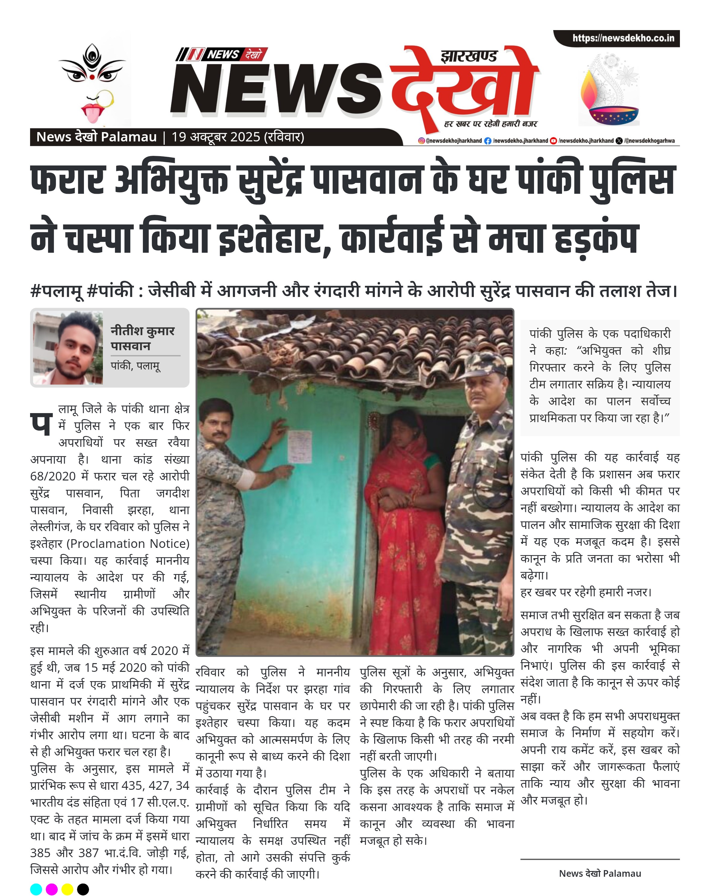 फरार अभियुक्त सुरेंद्र पासवान के घर पांकी पुलिस ने चस्पा किया इश्तेहार, कार्रवाई से मचा हड़कंप