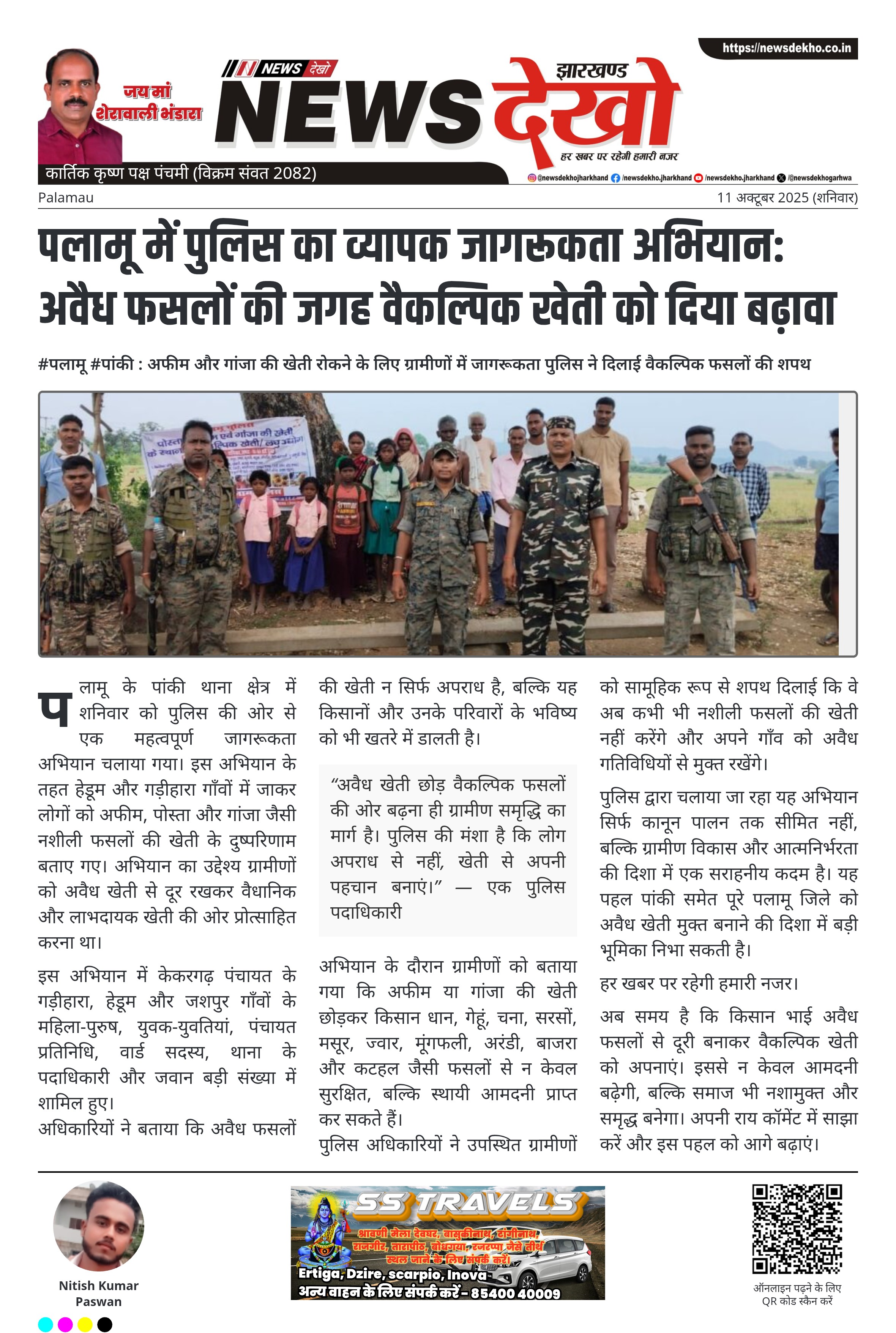 पलामू में पुलिस का व्यापक जागरूकता अभियान: अवैध फसलों की जगह वैकल्पिक खेती को दिया बढ़ावा