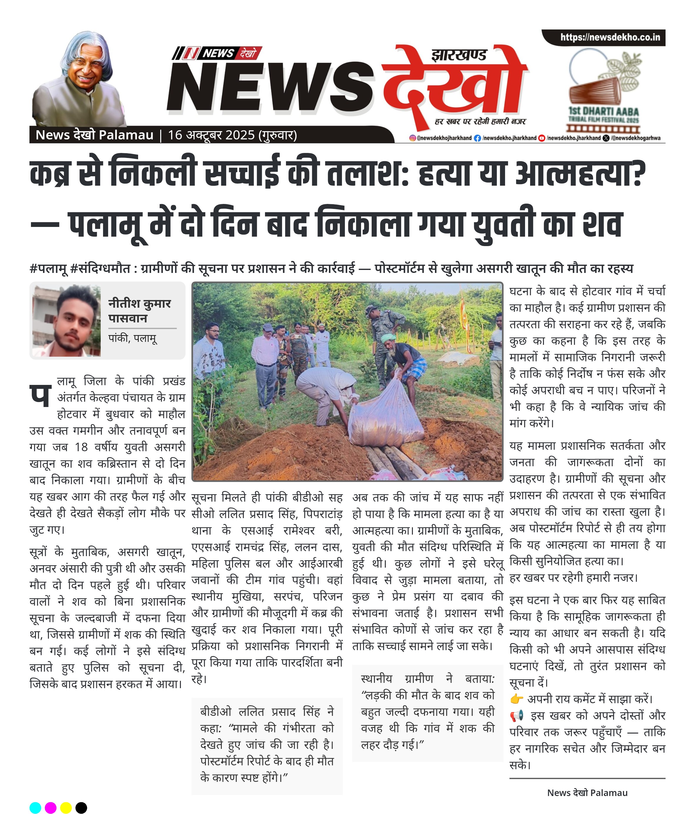 कब्र से निकली सच्चाई की तलाश: हत्या या आत्महत्या? — पलामू में दो दिन बाद निकाला गया युवती का शव