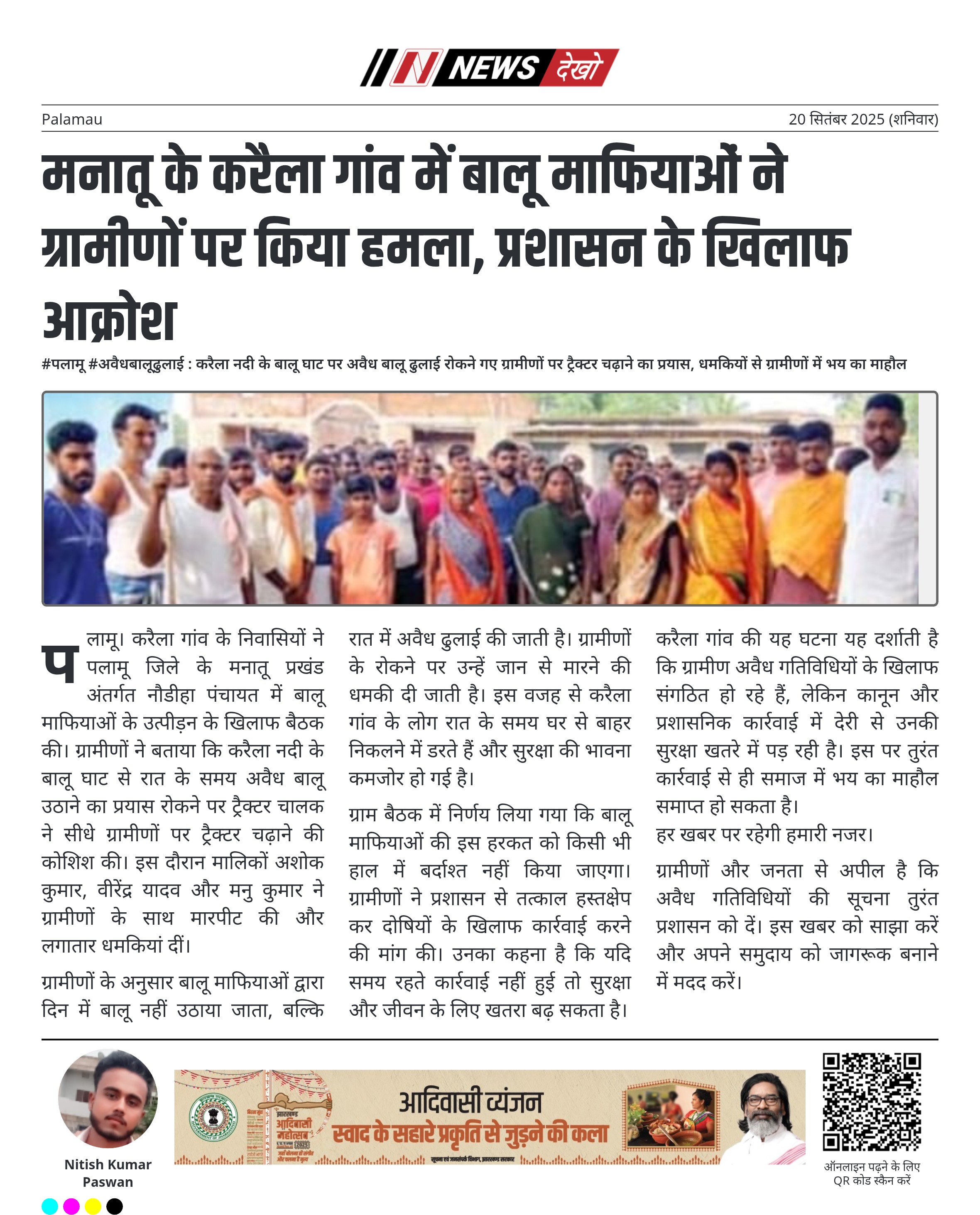 मनातू के करैला गांव में बालू माफियाओं ने ग्रामीणों पर किया हमला, प्रशासन के खिलाफ आक्रोश