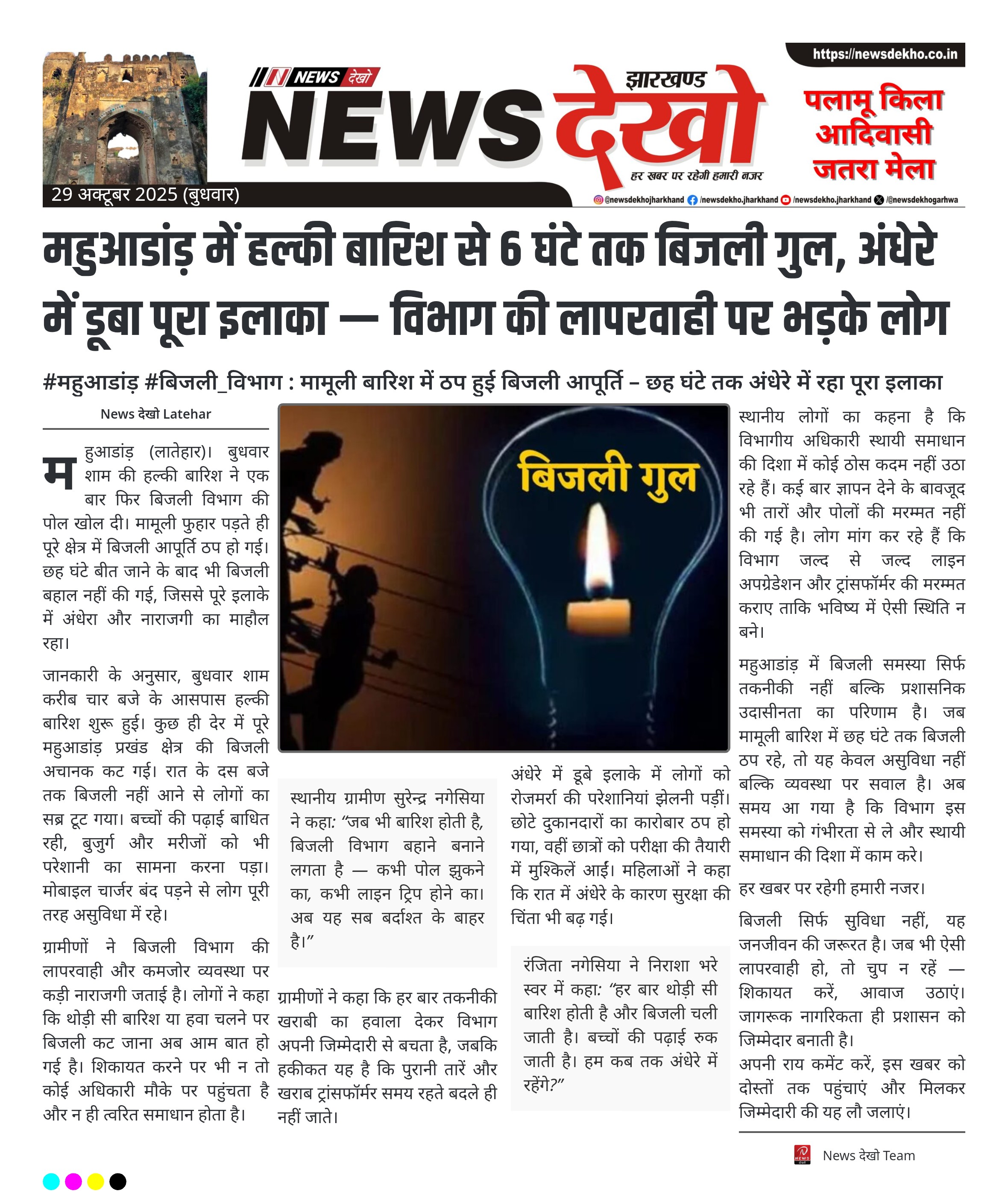 महुआडांड़ में हल्की बारिश से 6 घंटे तक बिजली गुल, अंधेरे में डूबा पूरा इलाका — विभाग की लापरवाही पर भड़के लोग