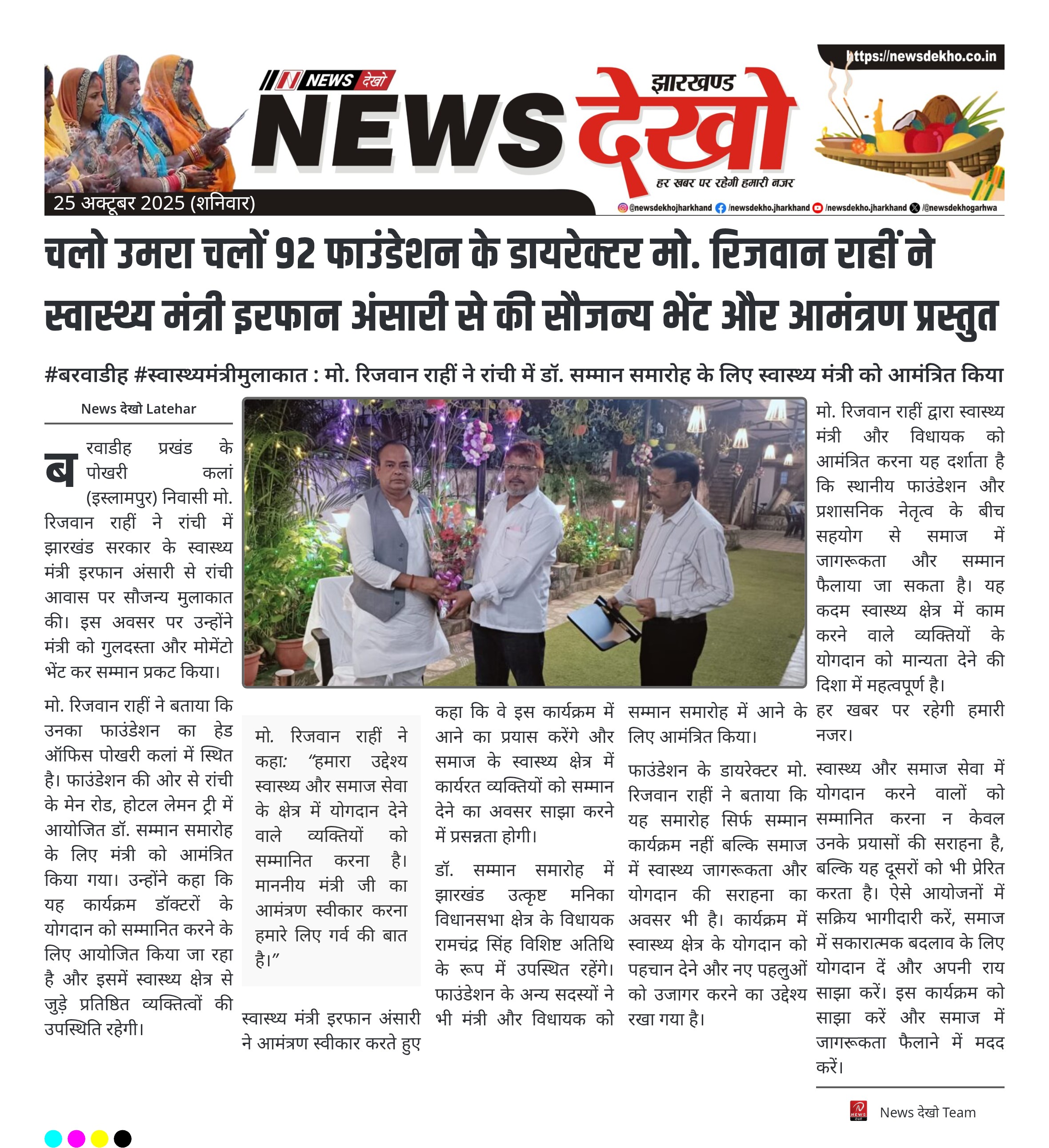#मेदिनीनगर #छठ_पूजा : छठ महापर्व पर वरदान चेरिटेबल ट्रस्ट ने महिलाओं के बीच पूजा सामग्री और फल वितरण कर आस्था व सेवा का संदेश दिया वरदान चेरिटेबल ट्रस्ट की ओर से बेलवाटिका में छठव्रतियों के लिए धोती-साड़ी और फल का वितरण किया गया। ट्रस्ट के अध्यक्ष विवेक वर्मा ने कहा कि यह सेवा हर वर्ष नियमित रूप से की जाती है और भविष्य में इसे और बेहतर तरीके से किया जाएगा। कार्यक्रम में सचिव शर्मीला वर्मा, विधायक प्रतिनिधि मनोहर कुमार…