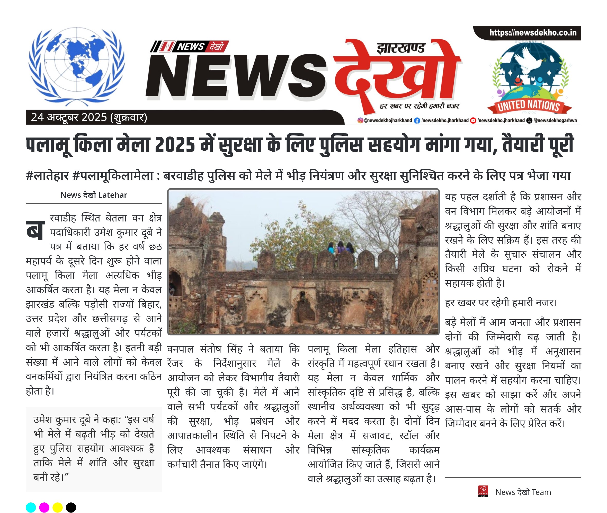 #पलामू #छठ_महापर्व : मेदिनीनगर में छठ घाटों की तैयारियों का निरीक्षण कर सुरक्षा और स्वच्छता सुनिश्चित करने पर जोर उपायुक्त समीरा एस, पुलिस अधीक्षक रीष्मा रमेशन और मेदनीनगर की प्रथम महापौर अरुणा शंकर ने घाटों का विस्तृत निरीक्षण किया। महापौर ने कोयल नदी में पानी के उच्च स्तर और अवैध बालू खनन से हुए किनारों के गहरे होने पर चिंता व्यक्त की। प्रशासन को निर्देश दिए गए कि छठ व्रतियों, विशेषकर बच्चों, की सुरक्षा के लिए प्रशिक्षित तैराक और गोताखोर…