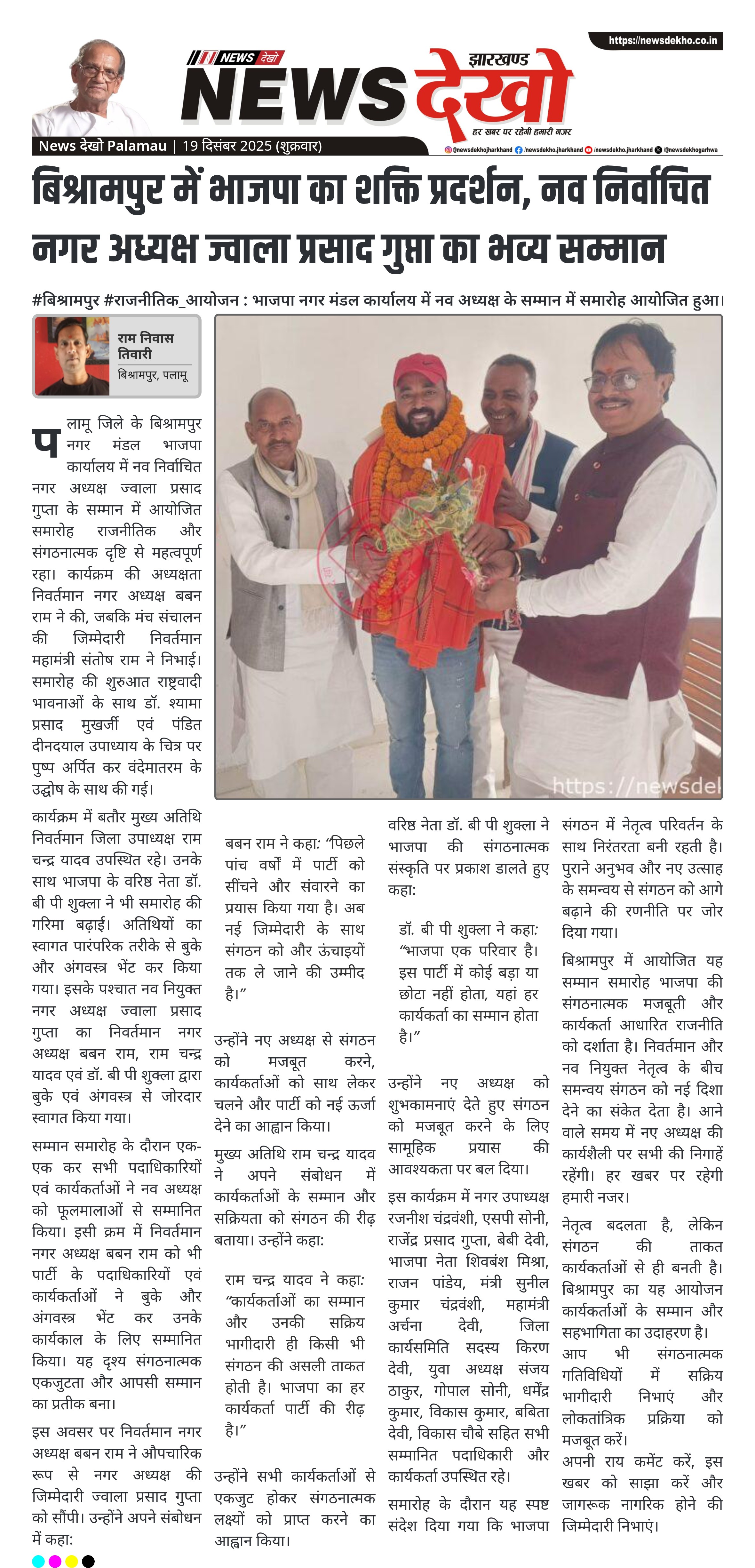 बिश्रामपुर में भाजपा का शक्ति प्रदर्शन, नव निर्वाचित नगर अध्यक्ष ज्वाला प्रसाद गुप्ता का भव्य सम्मान
