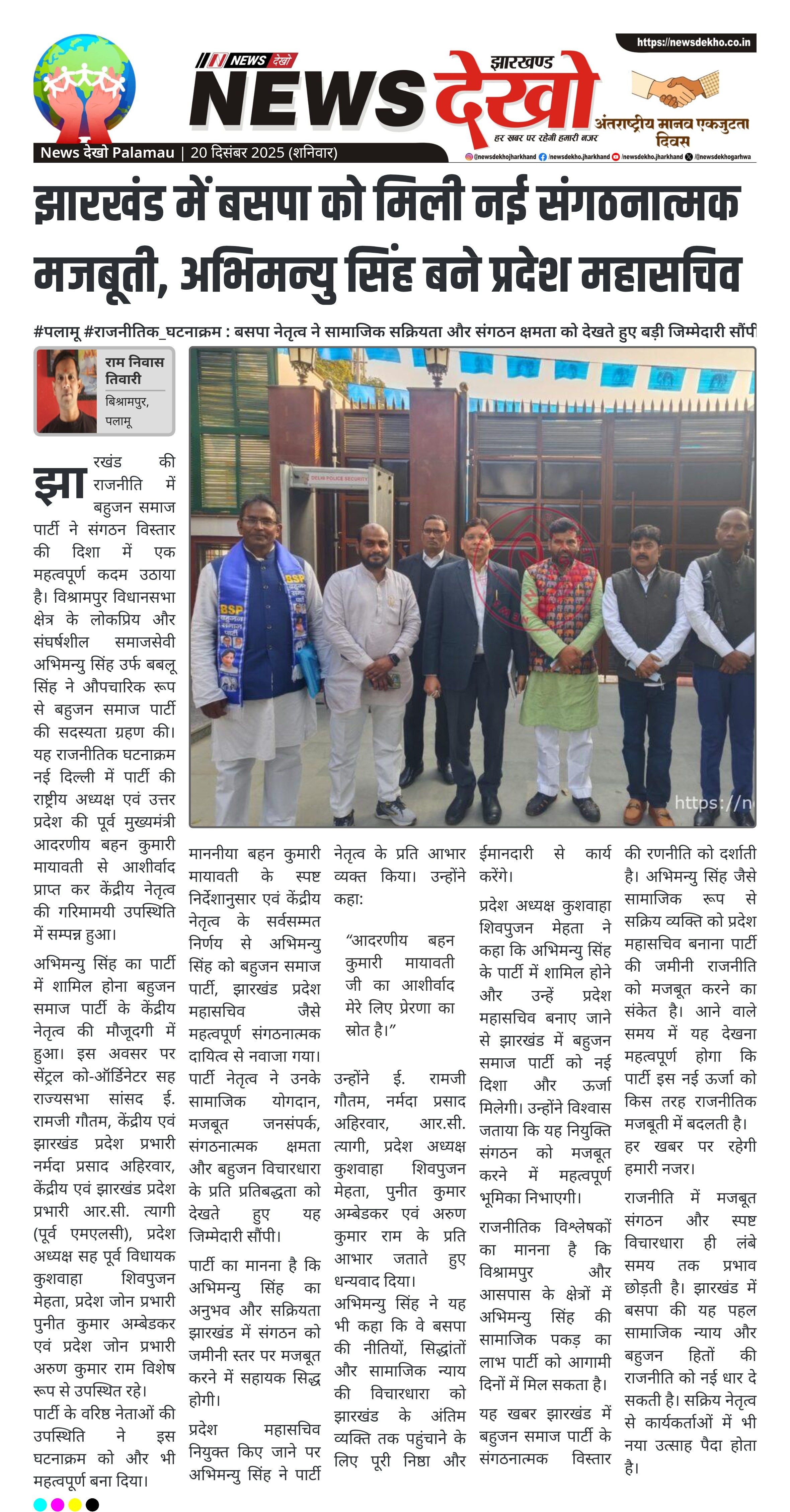 झारखंड में बसपा को मिली नई संगठनात्मक मजबूती, अभिमन्यु सिंह बने प्रदेश महासचिव