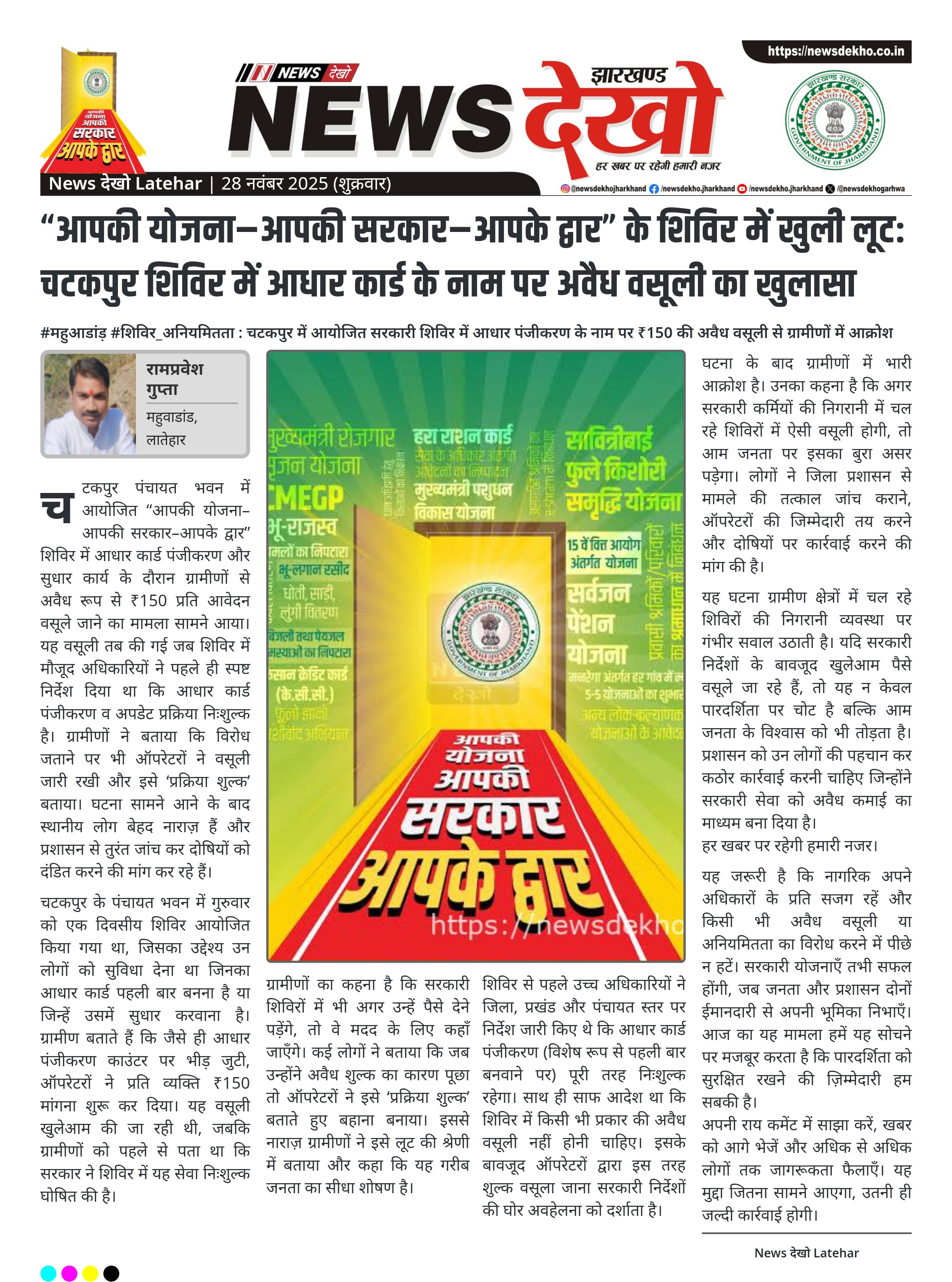 “आपकी योजना–आपकी सरकार–आपके द्वार” के शिविर में खुली लूट: चटकपुर शिविर में आधार कार्ड के नाम पर अवैध वसूली का खुलासा