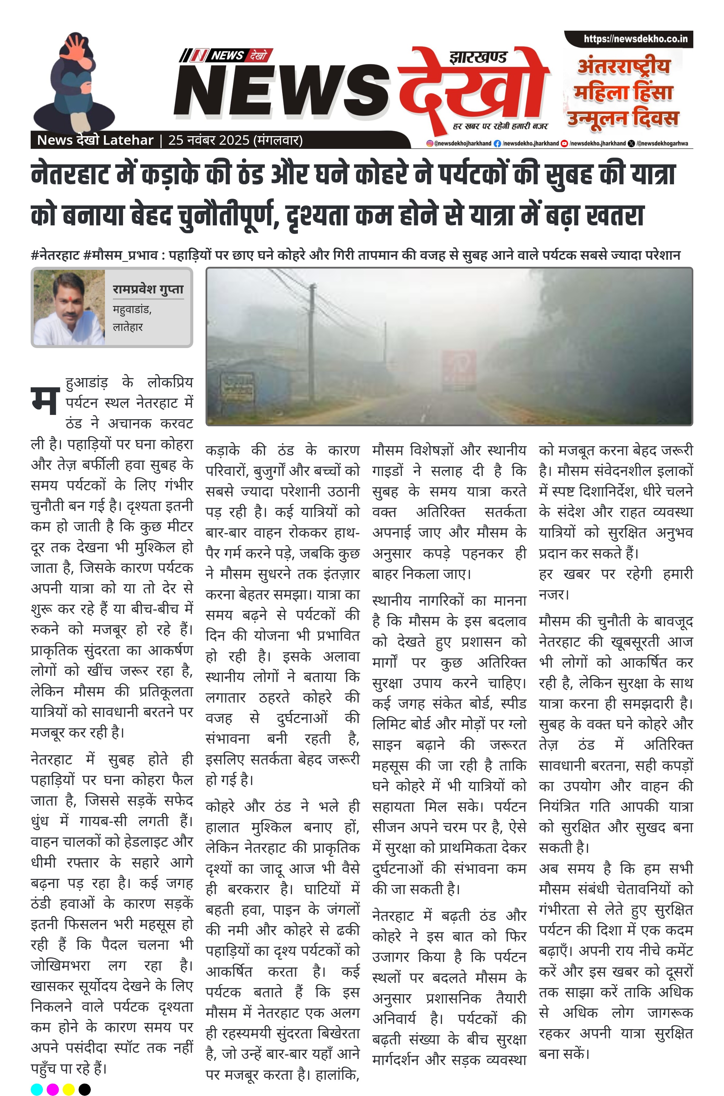 नेतरहाट में कड़ाके की ठंड और घने कोहरे ने पर्यटकों की सुबह की यात्रा को बनाया बेहद चुनौतीपूर्ण, दृश्यता कम होने से यात्रा में बढ़ा खतरा