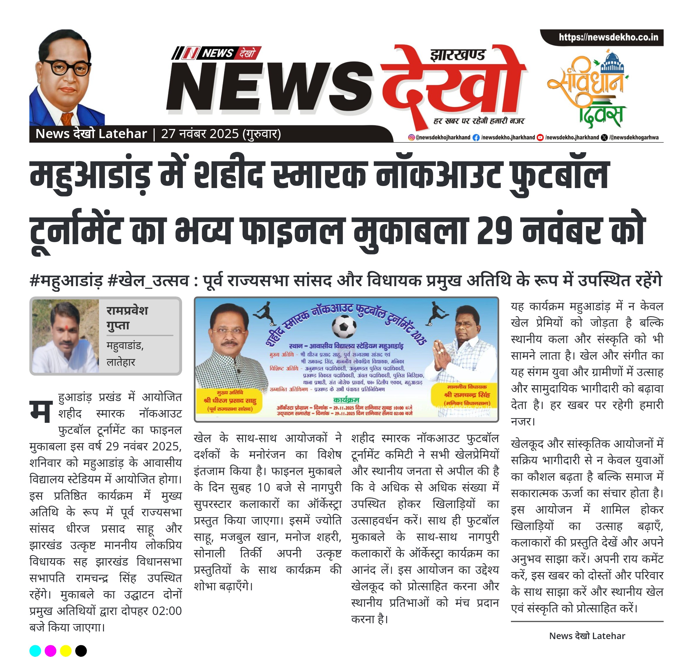 महुआडांड़ में शहीद स्मारक नॉकआउट फुटबॉल टूर्नामेंट का भव्य फाइनल मुकाबला 29 नवंबर को
