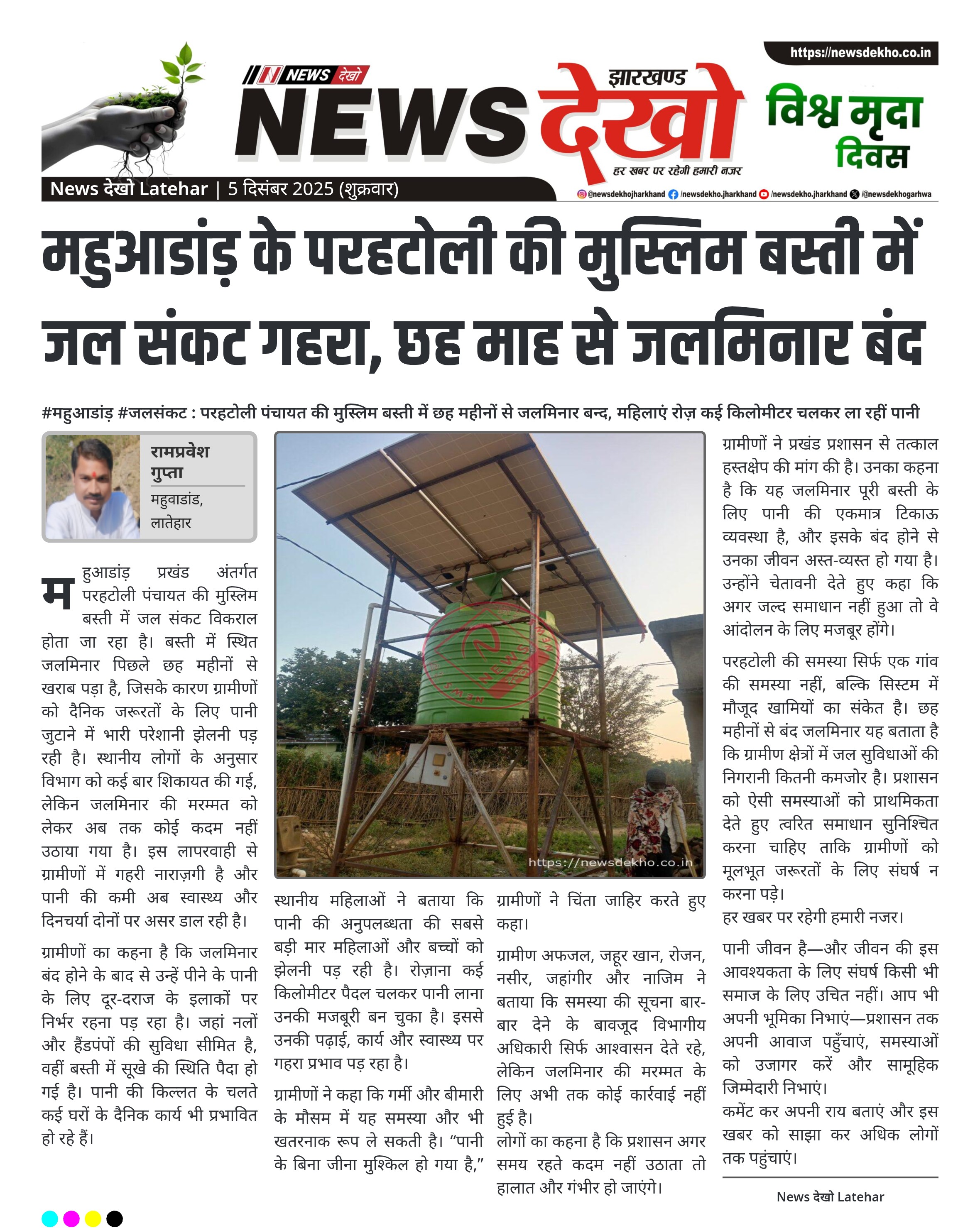 महुआडांड़ के परहटोली की मुस्लिम बस्ती में जल संकट गहरा, छह माह से जलमिनार बंद