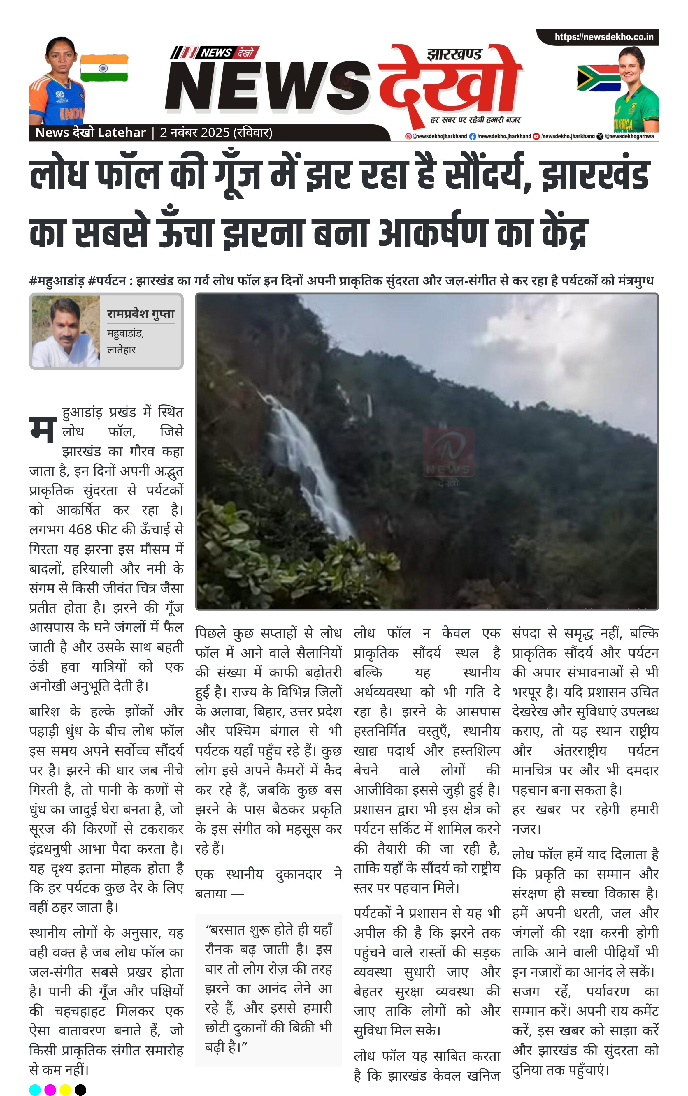 #महुआडांड़ #पर्यटन : झारखंड का गर्व लोध फॉल इन दिनों अपनी प्राकृतिक सुंदरता और जल-संगीत से कर रहा है पर्यटकों को मंत्रमुग्ध महुआडांड़ की गोद में बसा लोध फॉल, झारखंड का सबसे ऊँचा झरना, इस मौसम में अपनी पूरी रौनक पर है। करीब 468 फीट की ऊँचाई से गिरता यह जलप्रपात पूरे जंगल में गूँज पैदा करता है। हल्की बारिश और पहाड़ी धुंध ने आसपास की वादियों को स्वर्गिक रूप दे दिया है। देश-विदेश से आने वाले सैलानियों की संख्या…