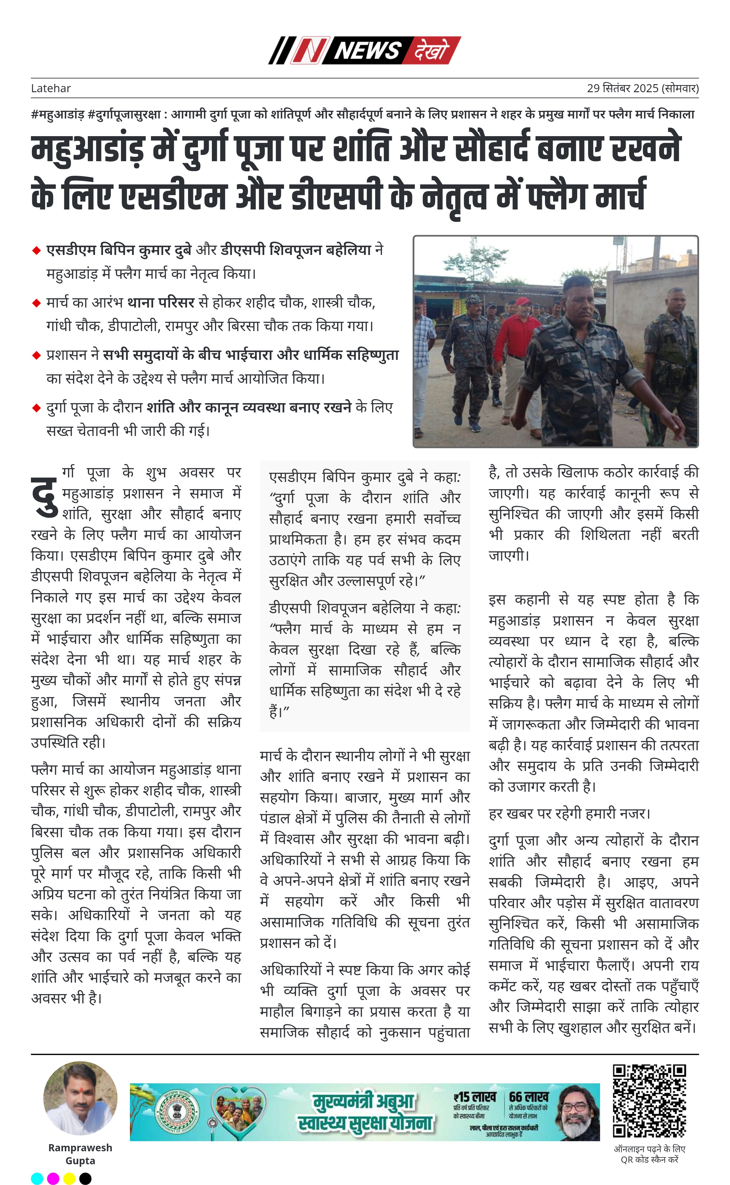 महुआडांड़ में दुर्गा पूजा पर शांति और सौहार्द बनाए रखने के लिए एसडीएम और डीएसपी के नेतृत्व में फ्लैग मार्च