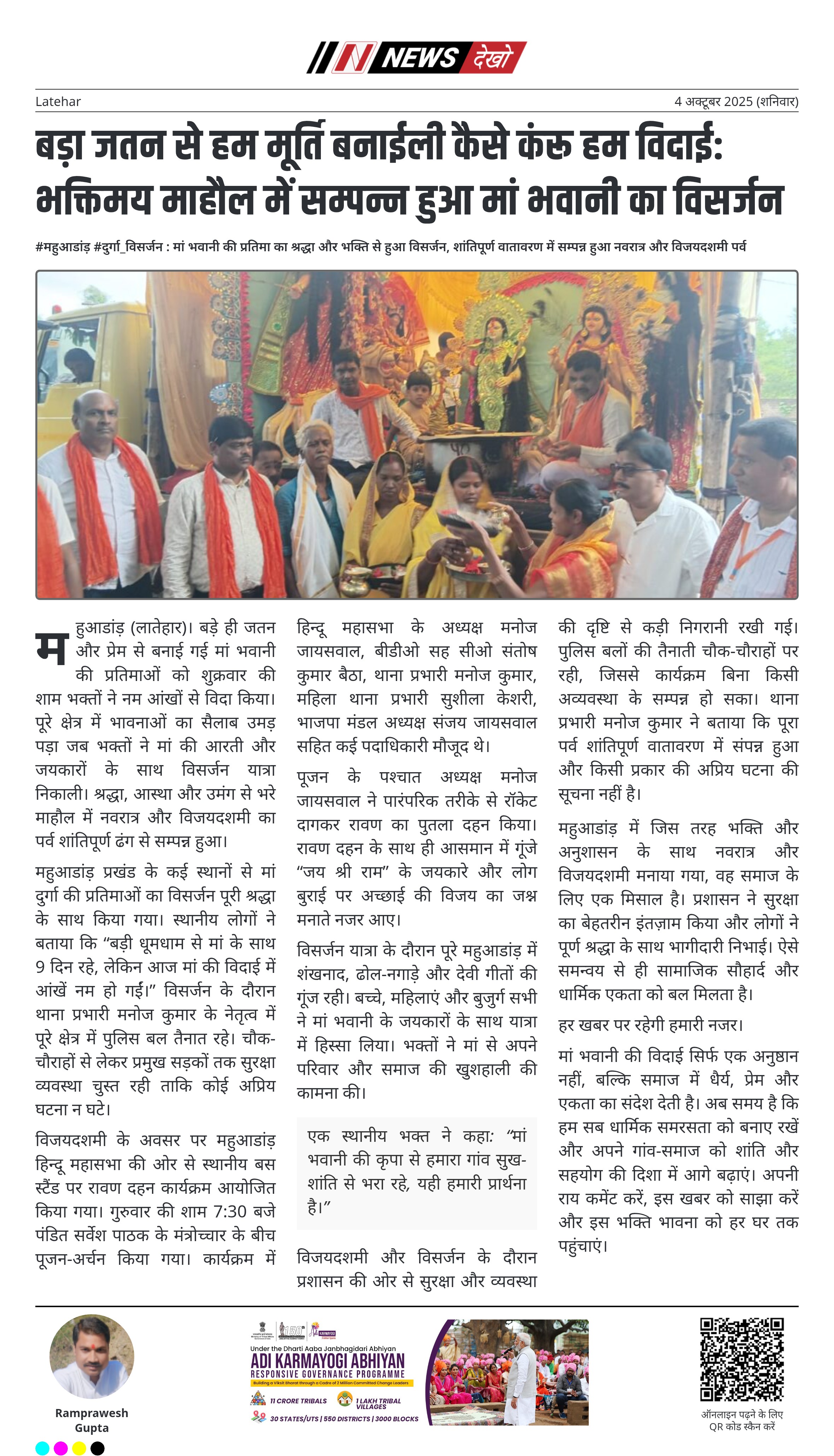 महुआडांड में नवरात्र और विजयादशमी पर मां दुर्गा प्रतिमाओं का भावपूर्ण विसर्जन