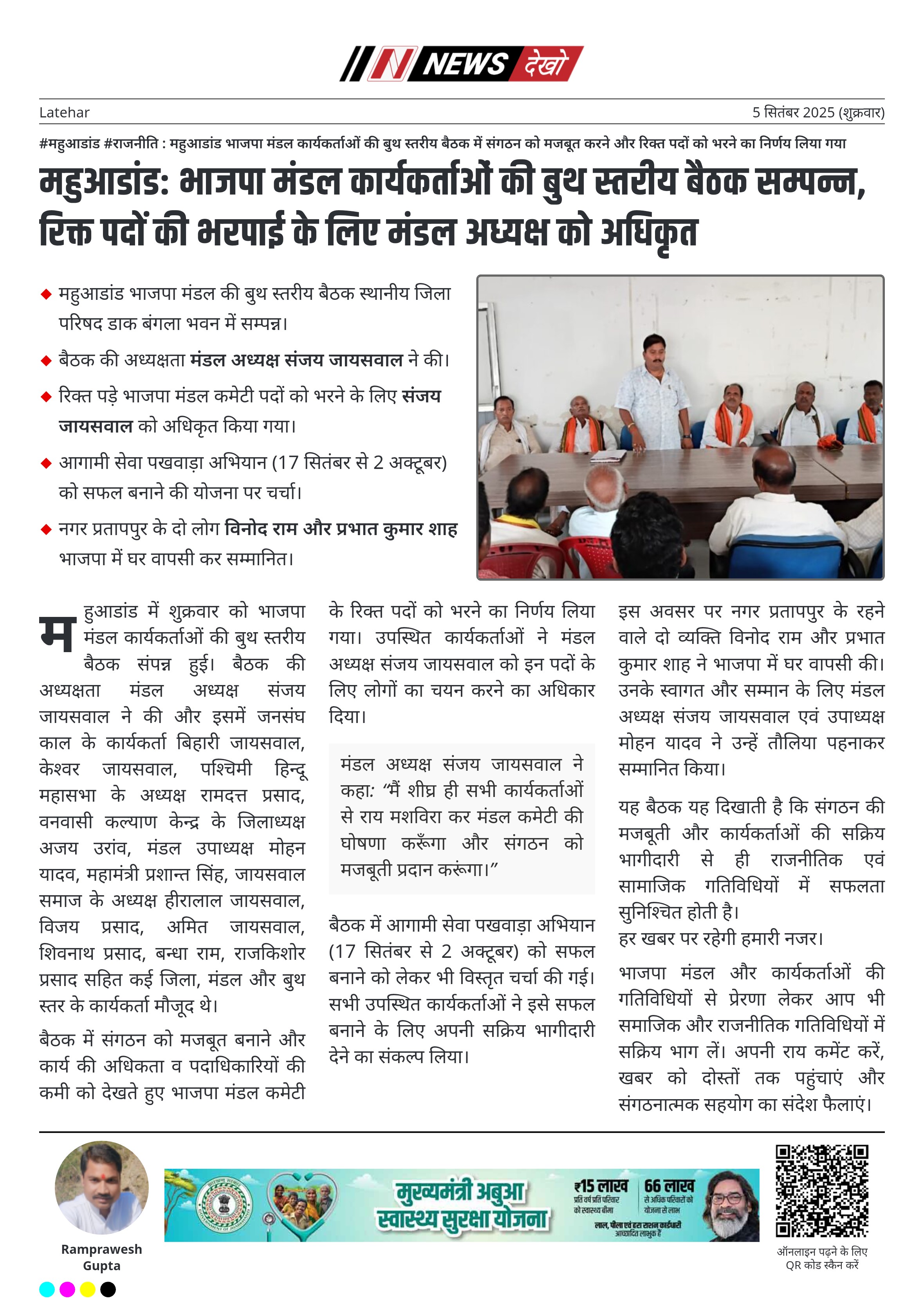 महुआडांड: भाजपा मंडल कार्यकर्ताओं की बुथ स्तरीय बैठक सम्पन्न, रिक्त पदों की भरपाई के लिए मंडल अध्यक्ष को अधिकृत