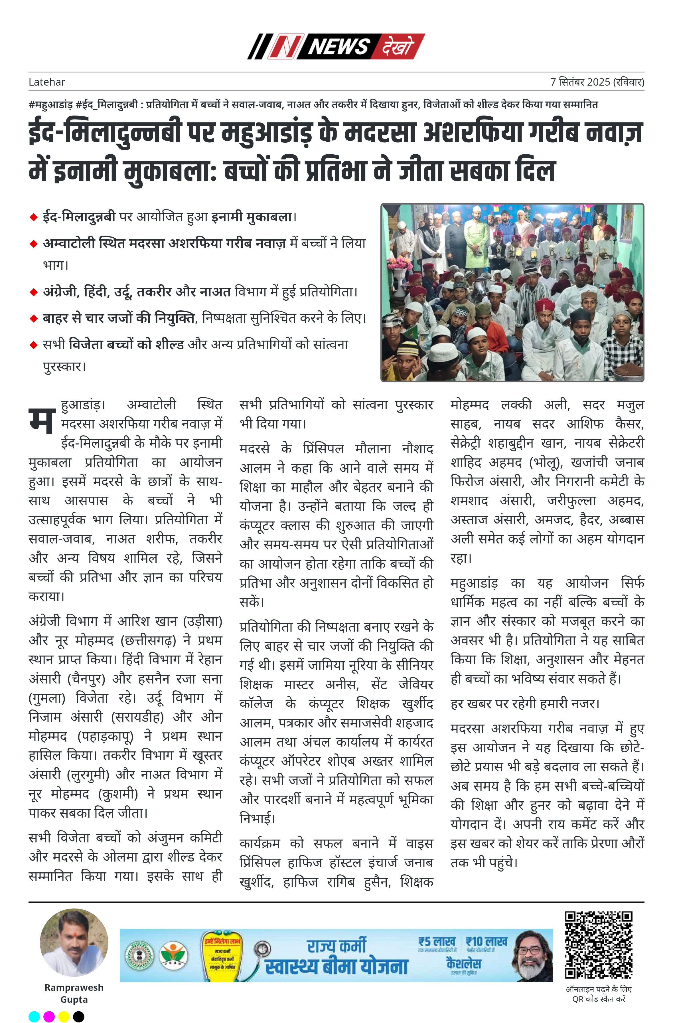 ईद-मिलादुन्नबी पर महुआडांड़ के मदरसा अशरफिया गरीब नवाज़ में इनामी मुकाबला: बच्चों की प्रतिभा ने जीता सबका दिल