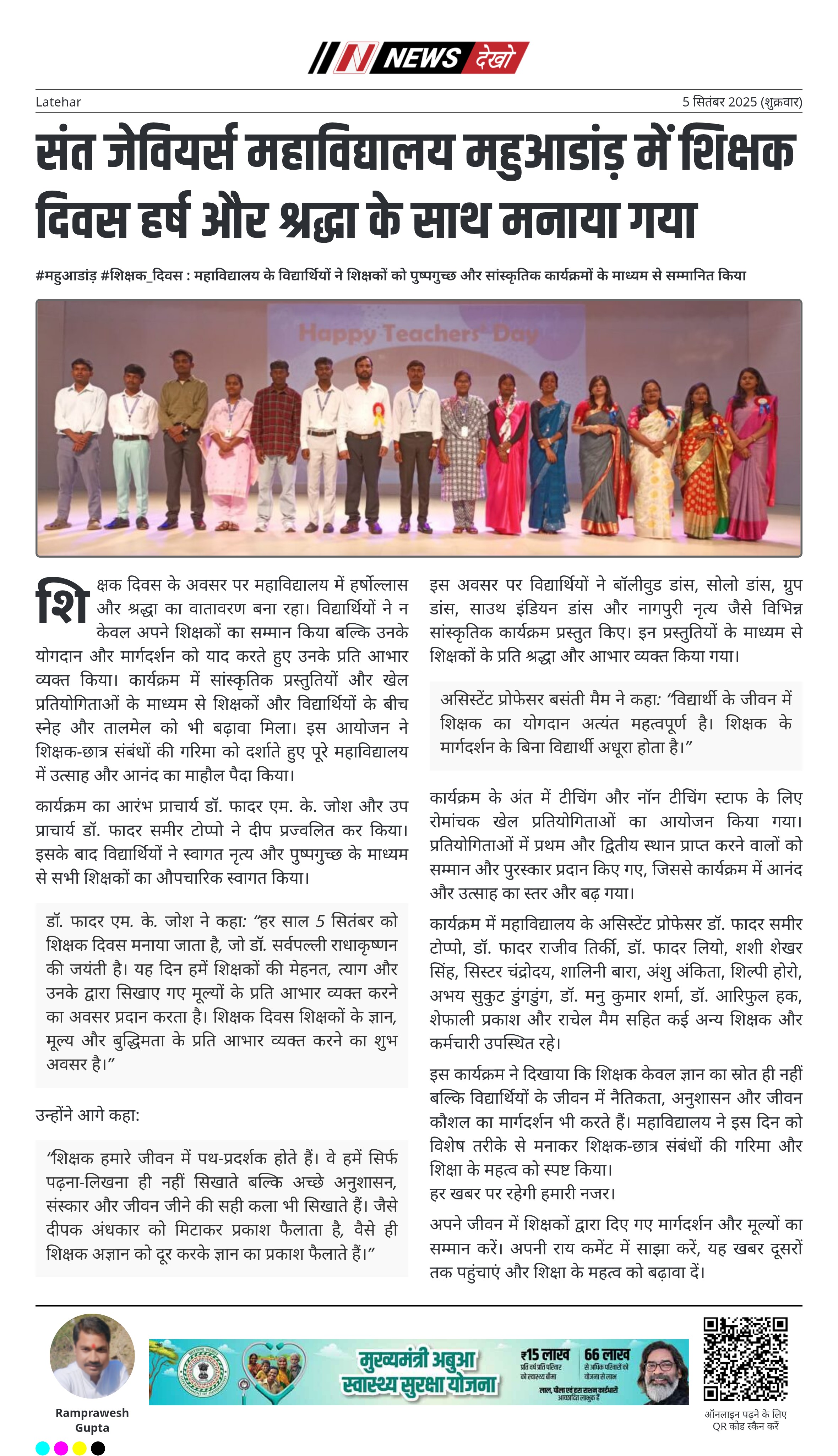 संत जेवियर्स महाविद्यालय महुआडांड़ में शिक्षक दिवस हर्ष और श्रद्धा के साथ मनाया गया