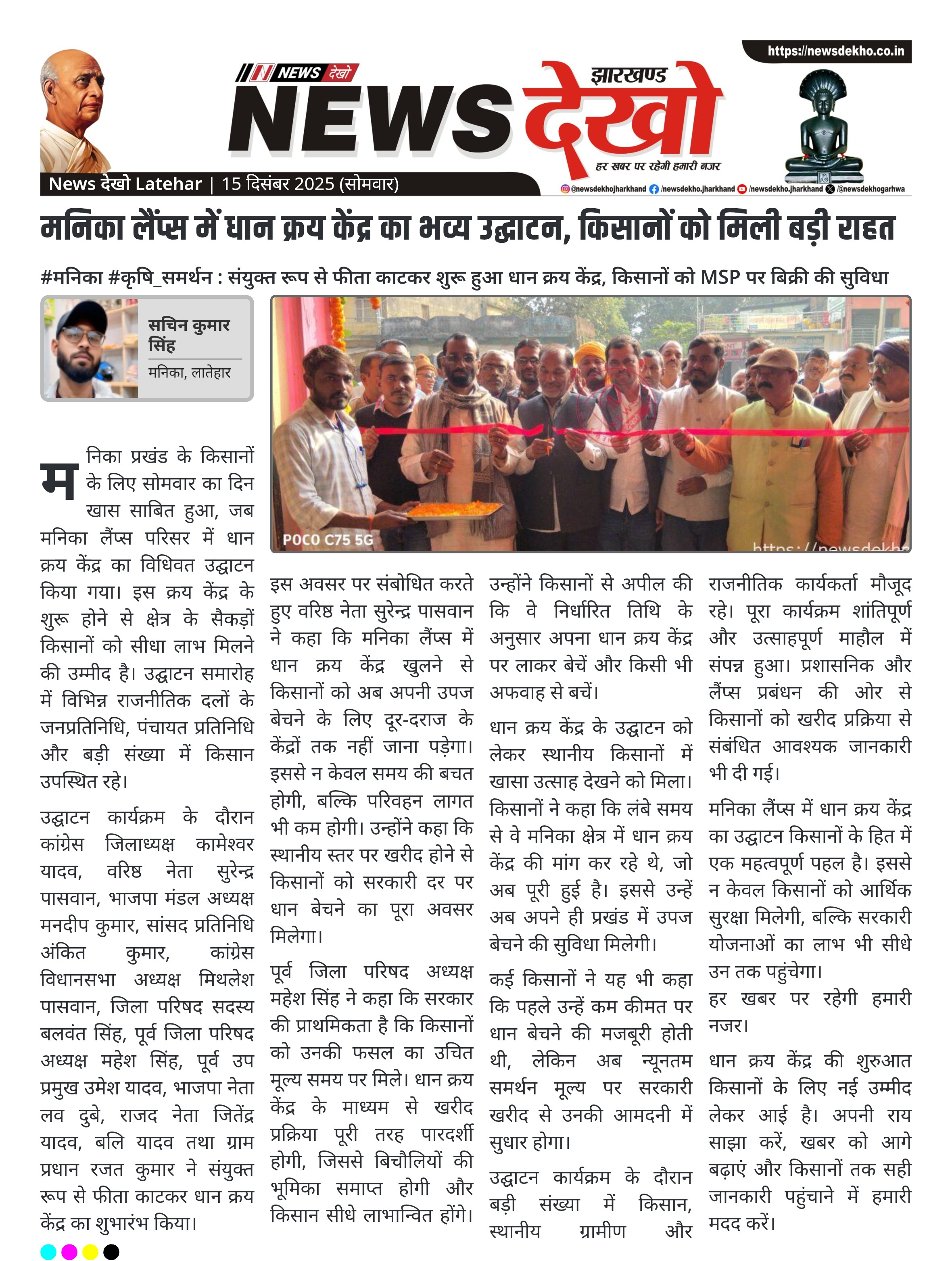 #मनिका #कृषि_समर्थन : संयुक्त रूप से फीता काटकर शुरू हुआ धान क्रय केंद्र, किसानों को MSP पर बिक्री की सुविधा मनिका लैंप्स परिसर में धान क्रय केंद्र का शुभारंभ। कांग्रेस, भाजपा और राजद के जनप्रतिनिधि रहे मौजूद। स्थानीय किसानों को अब नहीं जाना पड़ेगा दूर-दराज। न्यूनतम समर्थन मूल्य पर धान खरीद का भरोसा। पारदर्शी व्यवस्था से बिचौलियों की भूमिका होगी समाप्त। मनिका प्रखंड के किसानों के लिए सोमवार का दिन खास साबित हुआ, जब मनिका लैंप्स परिसर में धान क्रय…