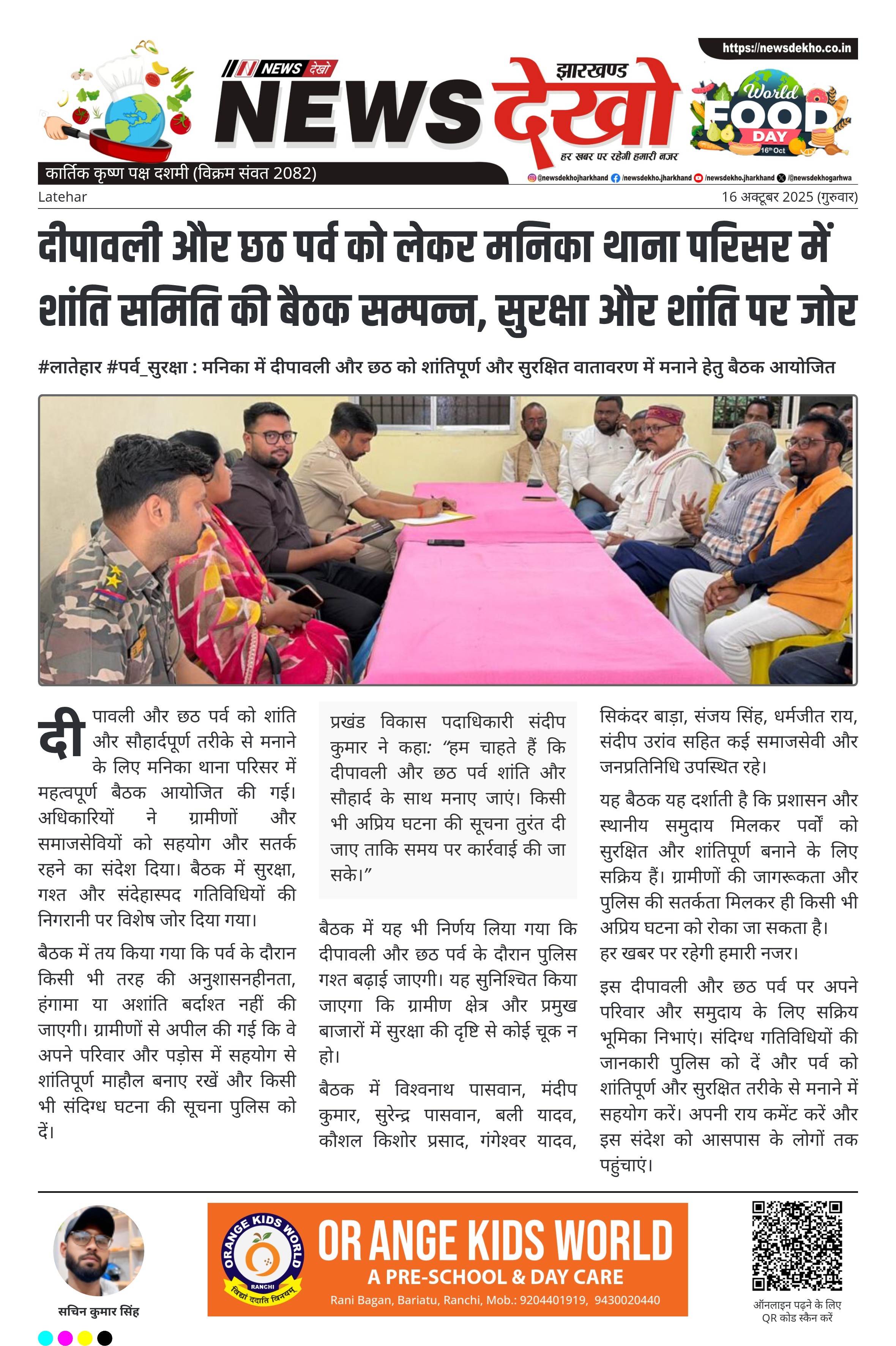 #लातेहार #पर्व_सुरक्षा : मनिका में दीपावली और छठ को शांतिपूर्ण और सुरक्षित वातावरण में मनाने हेतु बैठक आयोजित मनिका थाना परिसर में दीपावली और छठ पर्व को लेकर शांति समिति की बैठक आयोजित की गई। बैठक की अध्यक्षता प्रखंड विकास पदाधिकारी संदीप कुमार ने की। बैठक में अंचलाधिकारी अमन कुमार, प्रखंड प्रमुख प्रतिमा देवी, एसआई अवनीश कुमार सहित जनप्रतिनिधि, व्यापारी, ग्रामीण और समाजसेवी उपस्थित रहे। पर्व के दौरान किसी भी प्रकार की अशांति या अनुशासनहीनता को बर्दाश्त न करने का…