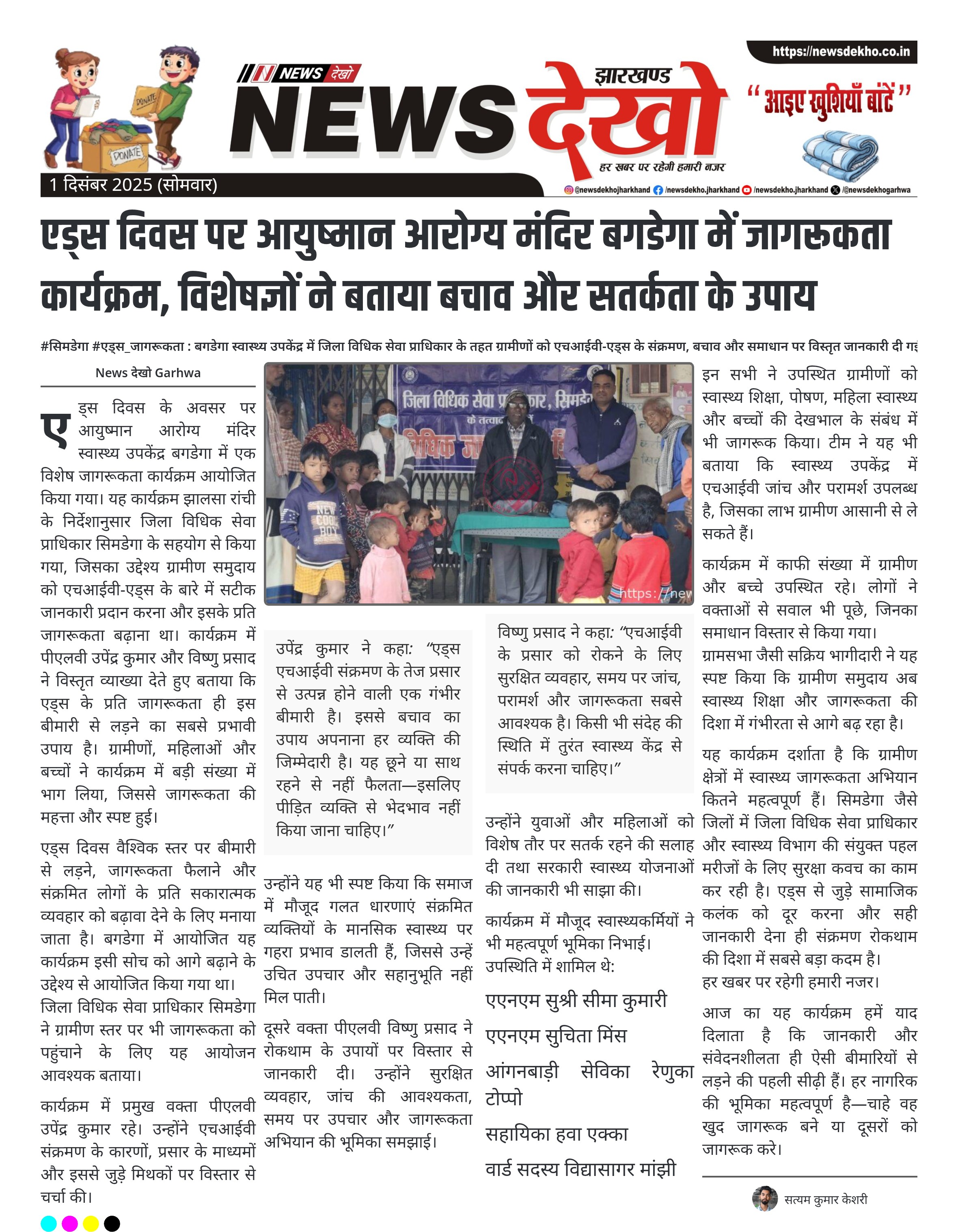 एड्स दिवस पर आयुष्मान आरोग्य मंदिर बगडेगा में जागरूकता कार्यक्रम, विशेषज्ञों ने बताया बचाव और सतर्कता के उपाय