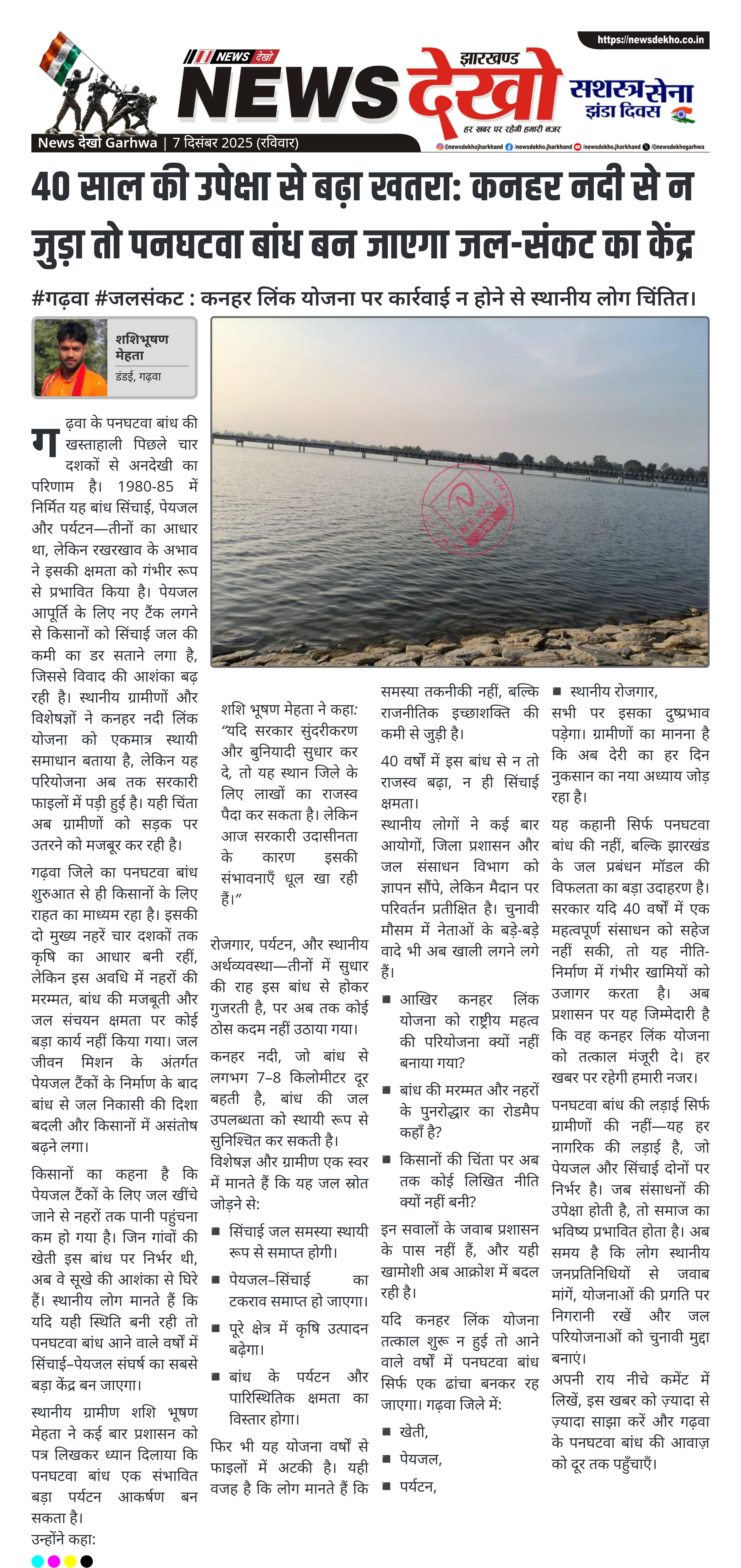#गढ़वा #जलसंकट : कनहर लिंक योजना पर कार्रवाई न होने से स्थानीय लोग चिंतित। पनघटवा बांध का निर्माण 1980-85 में हुआ, आज पूरी तरह आधुनिकीकरण रहित। सिंचाई नहरों में पानी की कमी—पेयजल टैंकों ने संकट बढ़ाया। शशि भूषण मेहता ने पर्यटन विकास व राजस्व बढ़ोतरी पर जोर दिया। 7-8 किलोमीटर दूर कनहर नदी से लिंकिंग को स्थायी समाधान बताया गया। परियोजना फाइलों में अटकी—स्थानीय लोग सरकार की इच्छाशक्ति की कमी से नाराज़। गढ़वा के पनघटवा बांध की खस्ताहाली पिछले चार…