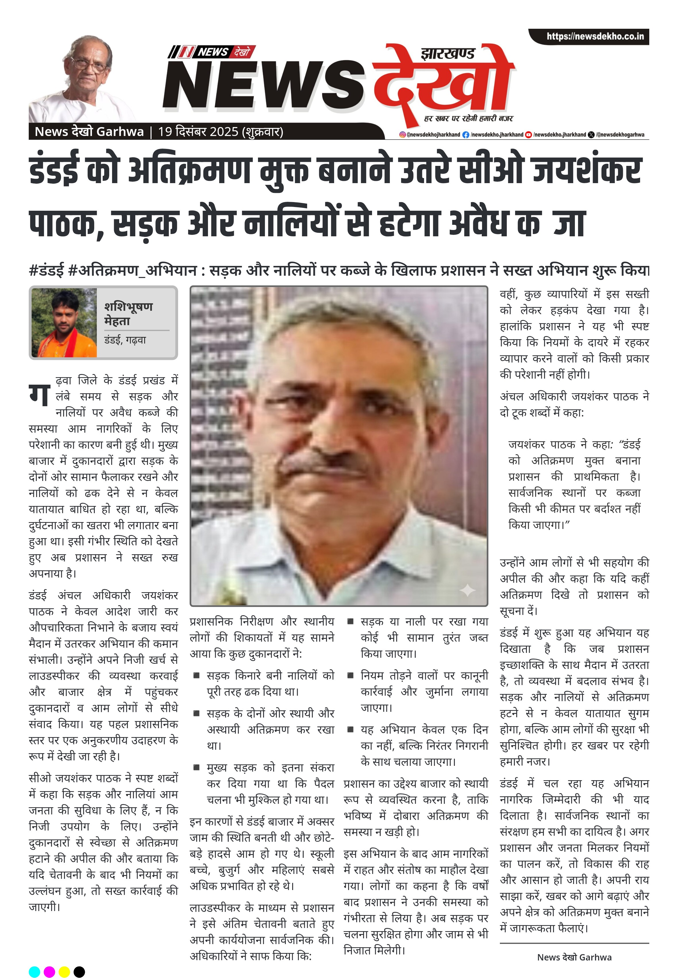 डंडई को अतिक्रमण मुक्त बनाने उतरे सीओ जयशंकर पाठक, सड़क और नालियों से हटेगा अवैध कब्जा