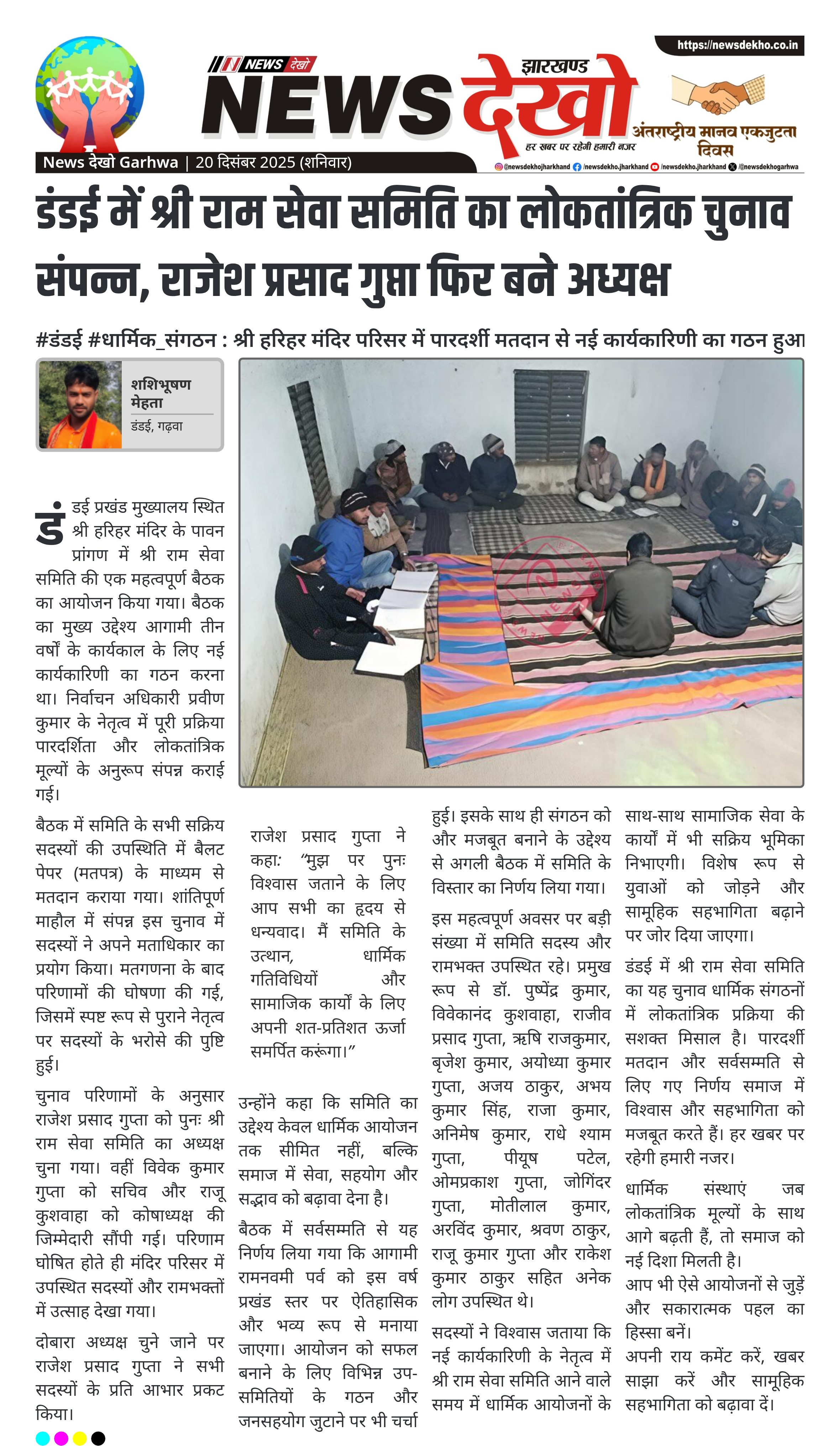डंडई में श्री राम सेवा समिति का लोकतांत्रिक चुनाव संपन्न, राजेश प्रसाद गुप्ता फिर बने अध्यक्ष