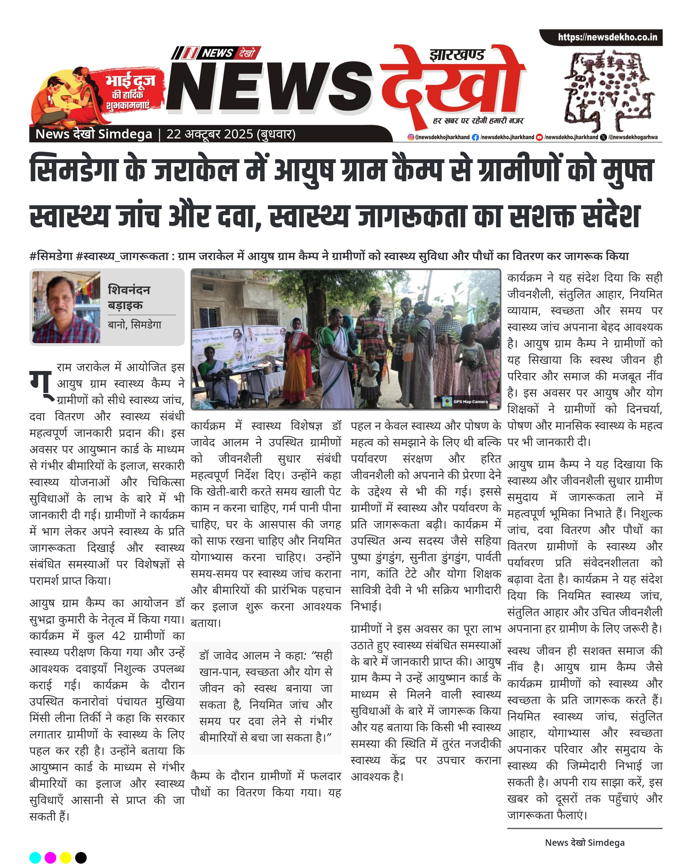 सिमडेगा के जराकेल में आयुष ग्राम कैम्प से ग्रामीणों को मुफ्त स्वास्थ्य जांच और दवा, स्वास्थ्य जागरूकता का सशक्त संदेश